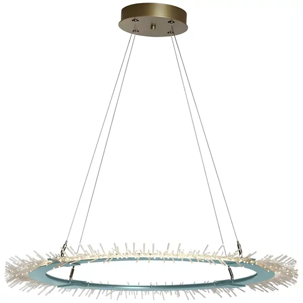 Make a splash with the Anemone Circular LED Pendant by Hubbardton Forge. Its unique design captures that distinct oceanic look by dressing a sleek metal ring in tendril-shaped acrylic accents. An integrated LED light source runs around the circumference, shining out through the tendrils for an alluring underwater effect.