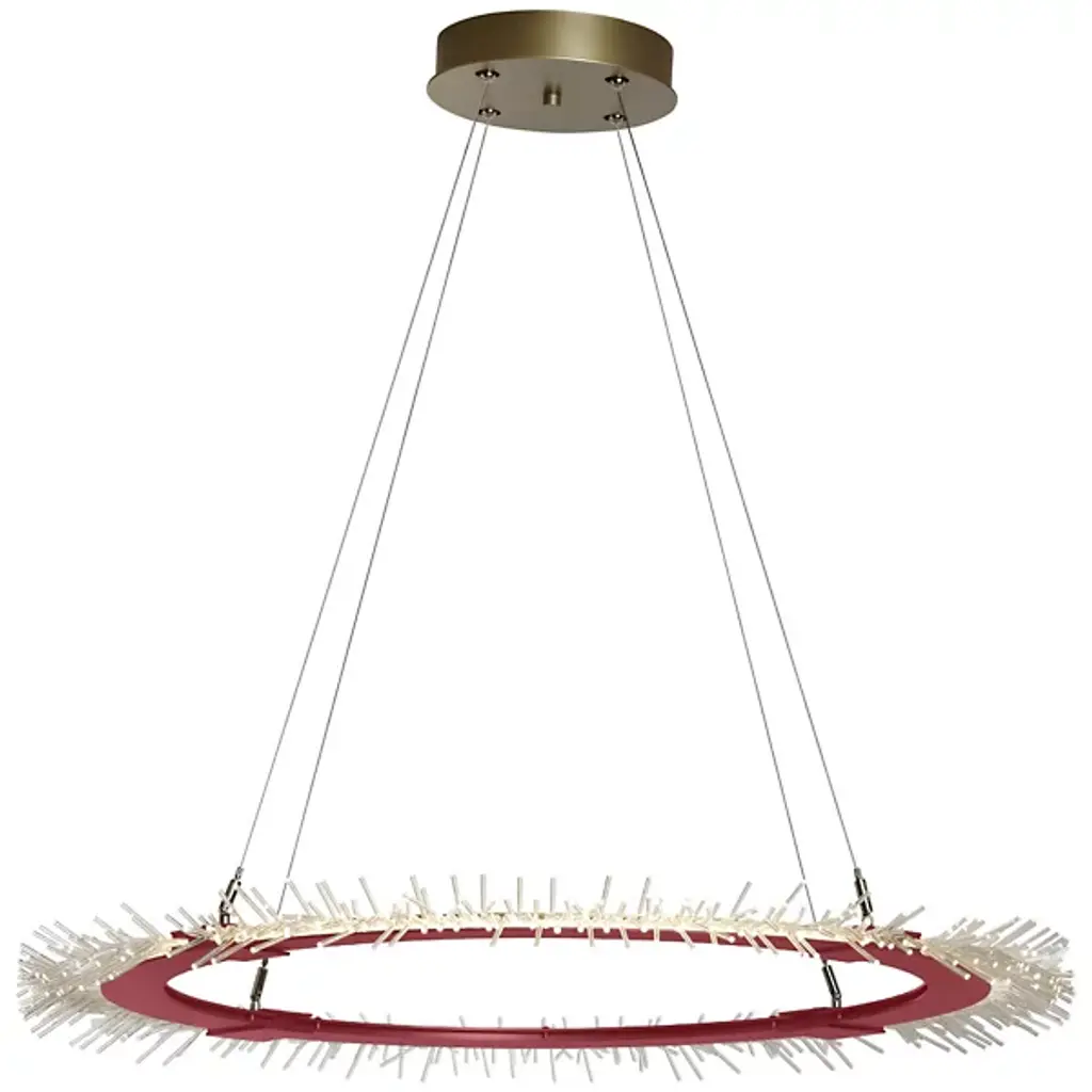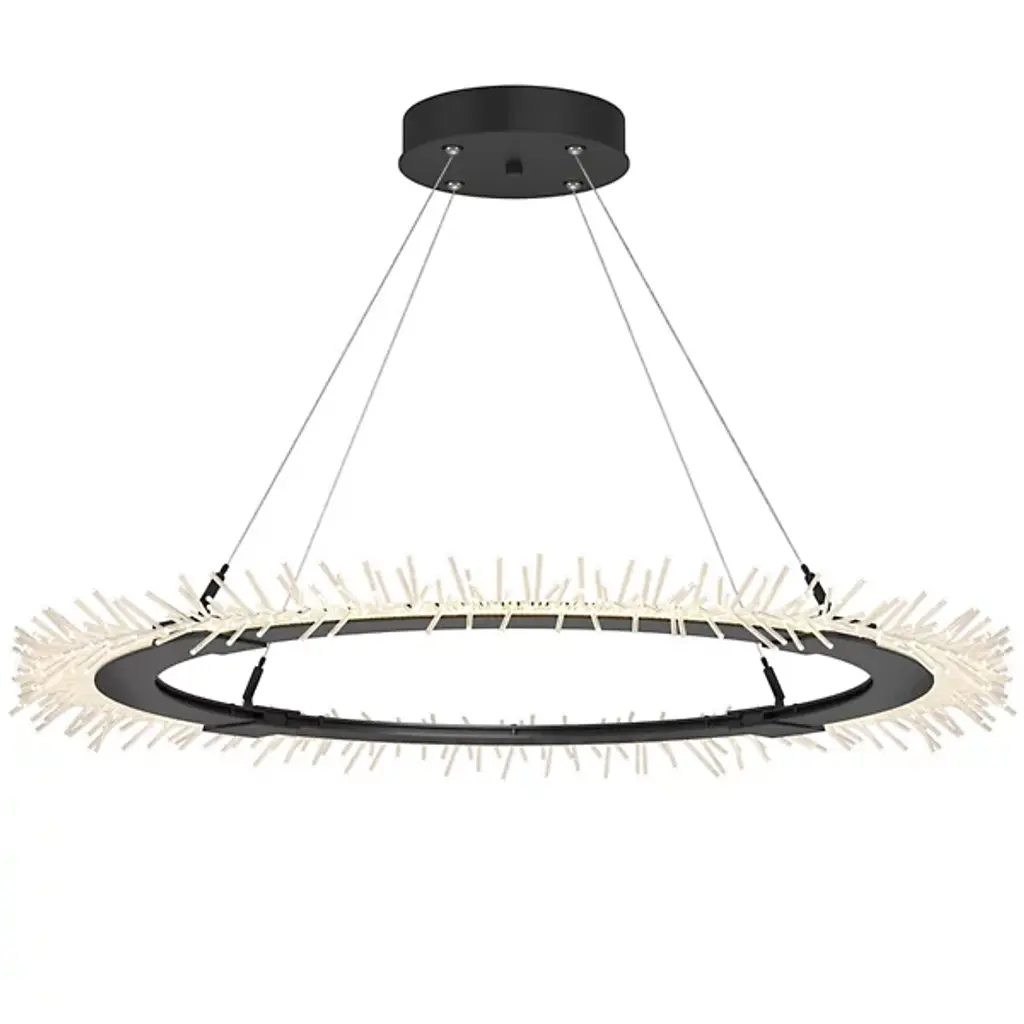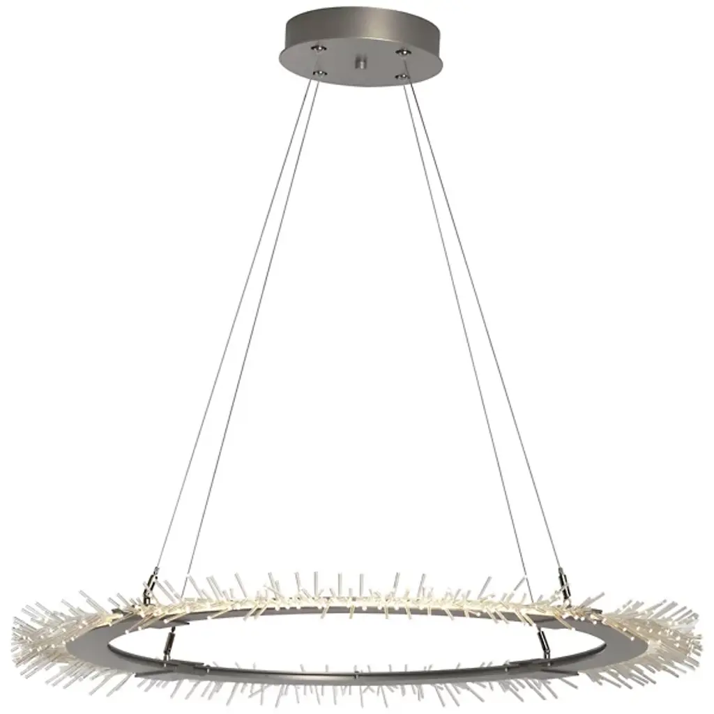 Make a splash with the Anemone Circular LED Pendant by Hubbardton Forge. Its unique design captures that distinct oceanic look by dressing a sleek metal ring in tendril-shaped acrylic accents. An integrated LED light source runs around the circumference, shining out through the tendrils for an alluring underwater effect.