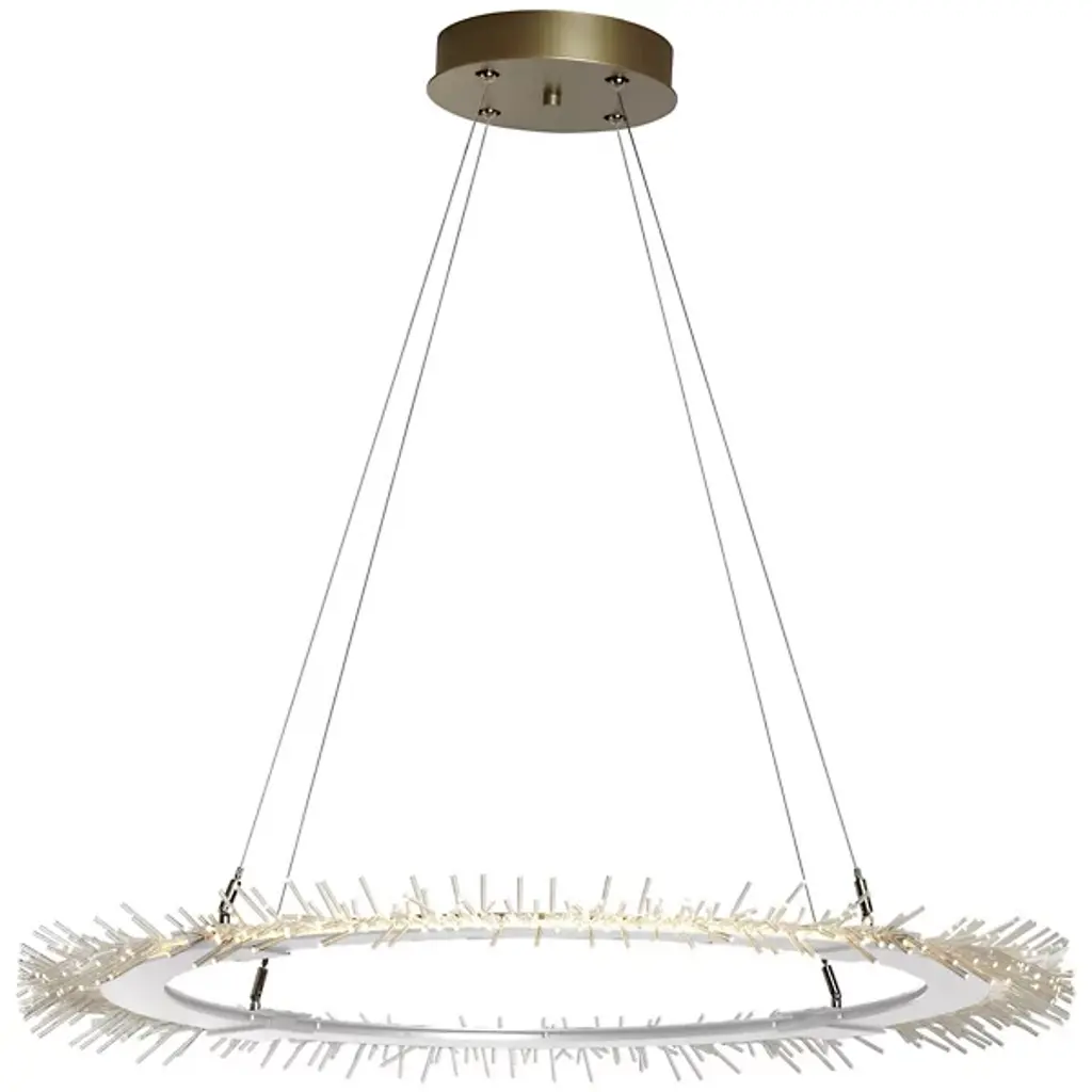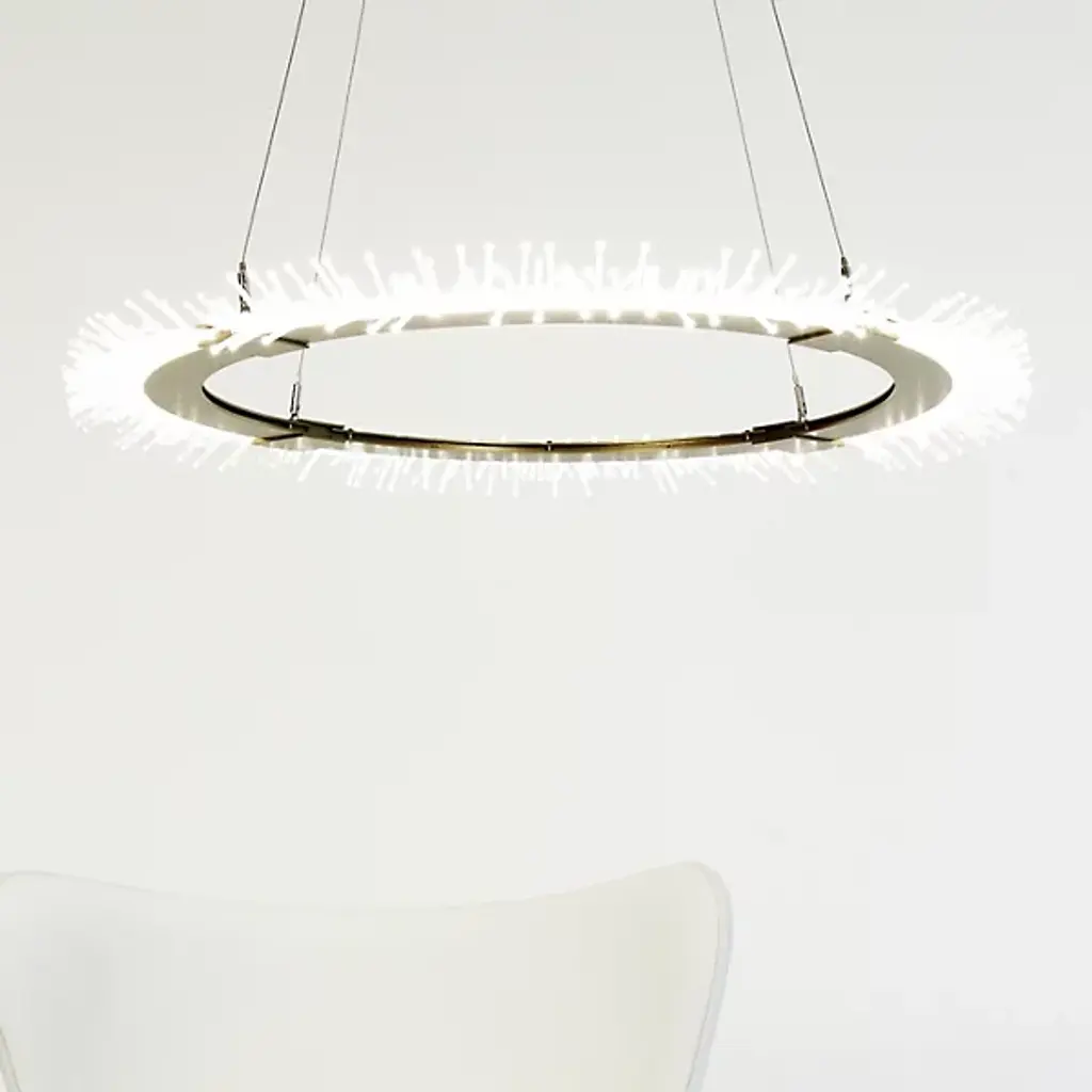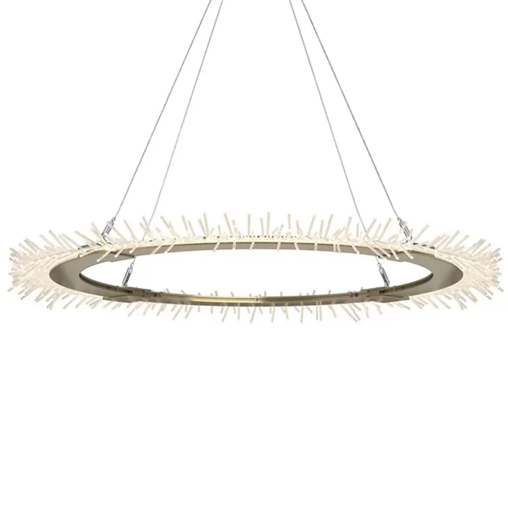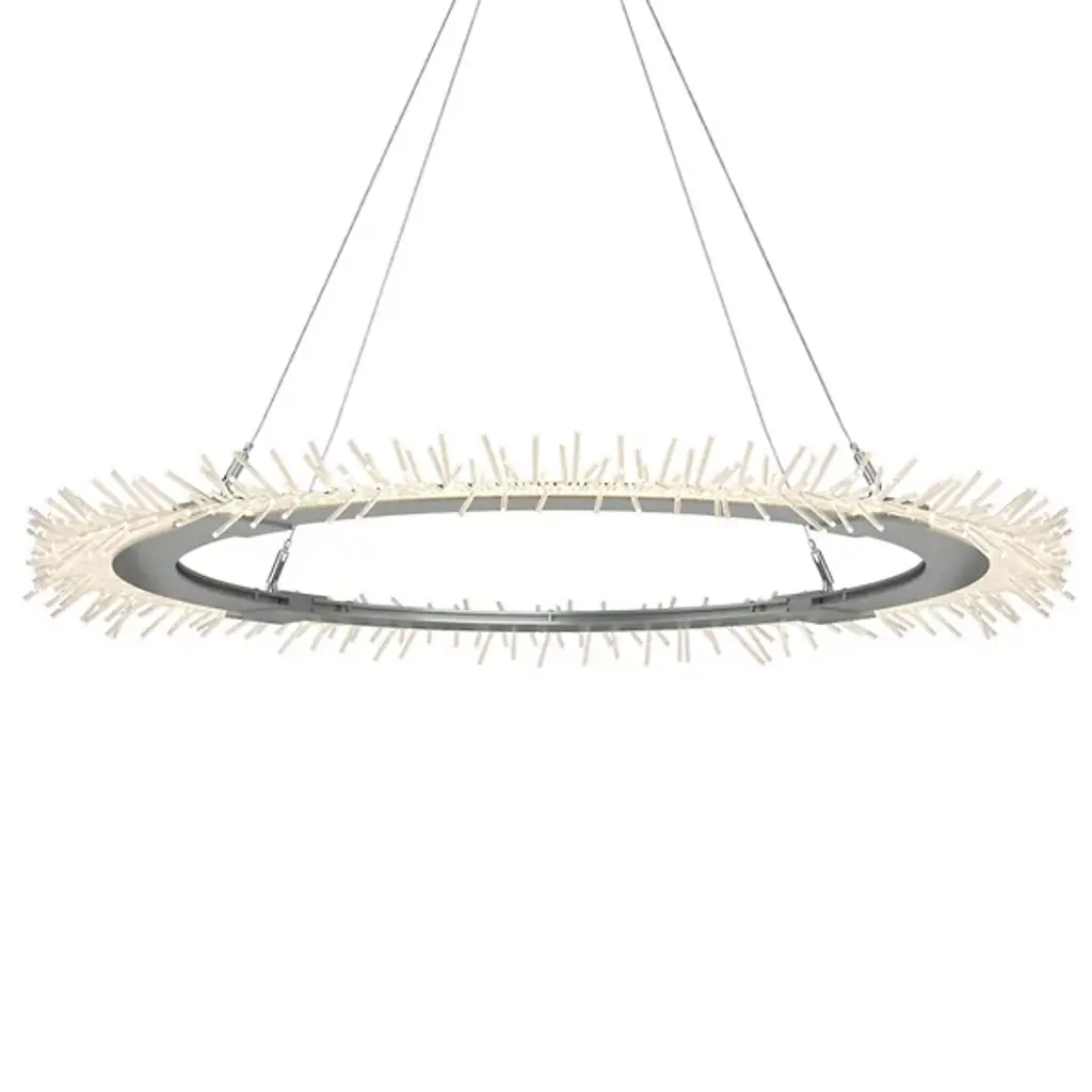 Make a splash with the Anemone Circular LED Pendant by Hubbardton Forge. Its unique design captures that distinct oceanic look by dressing a sleek metal ring in tendril-shaped acrylic accents. An integrated LED light source runs around the circumference, shining out through the tendrils for an alluring underwater effect.