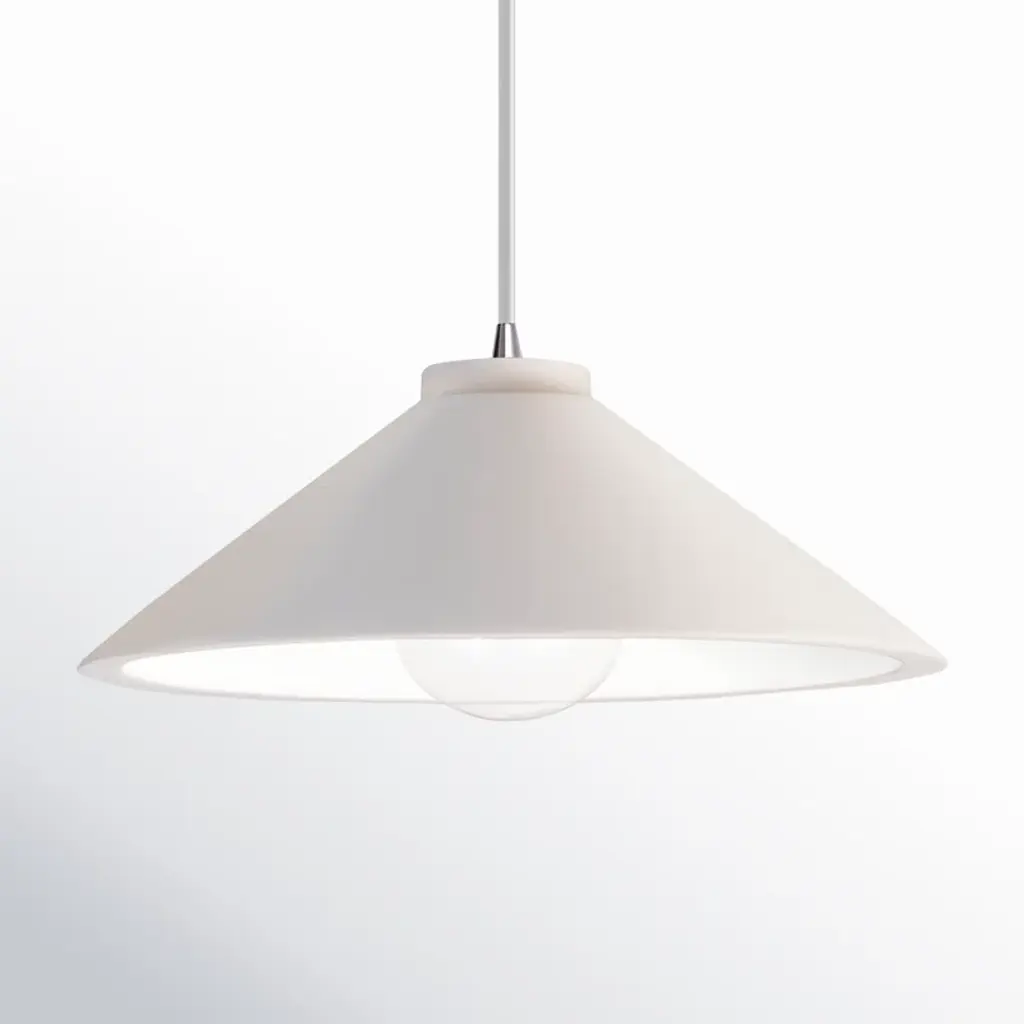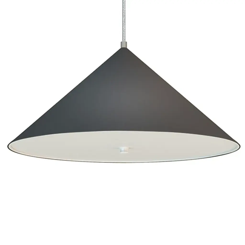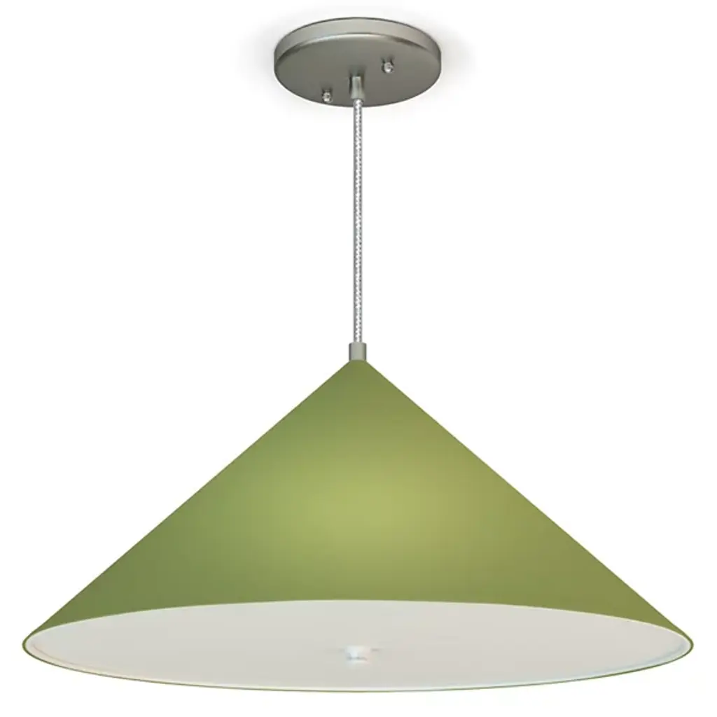 Transform your living spaces with the simple geometric shape of the Angelica Pendant from Seascape Lamps. A simple contemporary design, it descends from a circle-shaped canopy and places strong lamping inside a cone-shaped textile shade. A circular diffuser is nestled just inside the rim of the shade’s open base, held in place by a small circle accent that coordinates with the other smaller fittings. This shade arrangement reduces bright glare from the lamping and channels out a broad, even ambiance below that doesn’t overpower its environment.