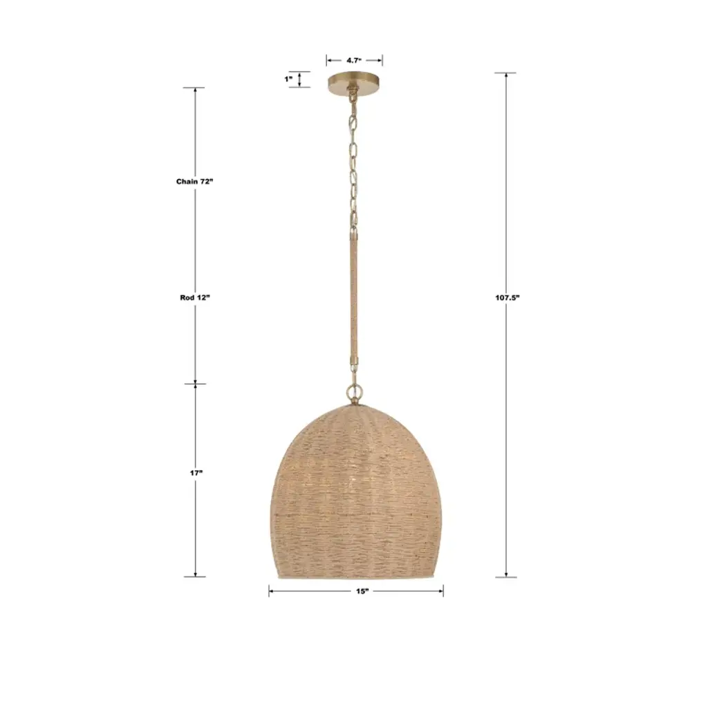 If cozy, paired-back, and relaxed style defines your home interior choices, the textural pendant light is what you have been looking for. The natural warmth of organic jute has a light and airy feeling that adds architectural interest to any space. The downward-facing rod is accented with wrapped jute with a gold finish, creating a beautiful tone-on-tone look. This versatile collection seamlessly blends in modern, coastal, and even traditional styles.