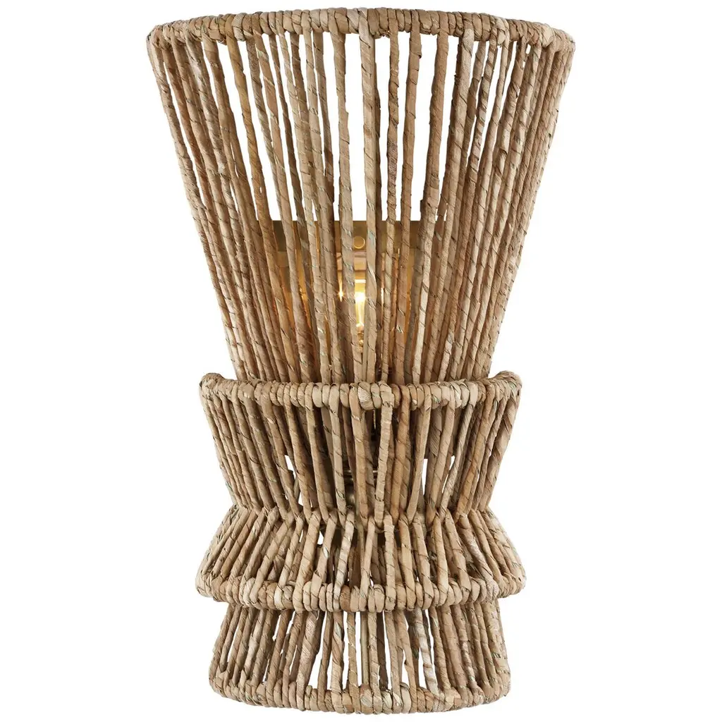 Suzanne Duin, who founded the Houston shop and design studio Maison Maison, conceived the Annabelle Floor Lamp. Known for a keen eye in sourcing authentic French antiques and home accessories from around the globe, Suzanne has created a line of woven light fixtures that are handmade by artisans in South Asia. The shade is made of water hyacinth, which brings a textural artistry to the composition. Equally sophisticated is how the thin stem is wrapped in the same natural material. The black finish on the woven lamp beautifully contrasts the beige tones. Features