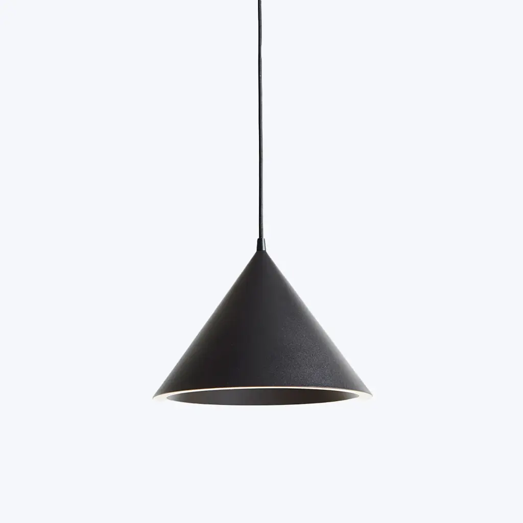 The Annular Pendant, designed by MSDS Studio, offers a striking reimagining of the classic cone pendant light. Made in Denmark from high-quality aluminum, this light fixture seamlessly combines two fundamental shapes: a conical shade and a perfect ring of light that circles the perimeter. The bold, graphic design of the Annular Pendant is further enhanced by the innovative use of LED technology, delivering a contemporary and energy-efficient illumination. Whether you're illuminating a dining room, kitchen, or modern workspace, the Annular light adds a touch of sophistication and timeless style. Elevate your space with this beautifully crafted, modern light fixture.