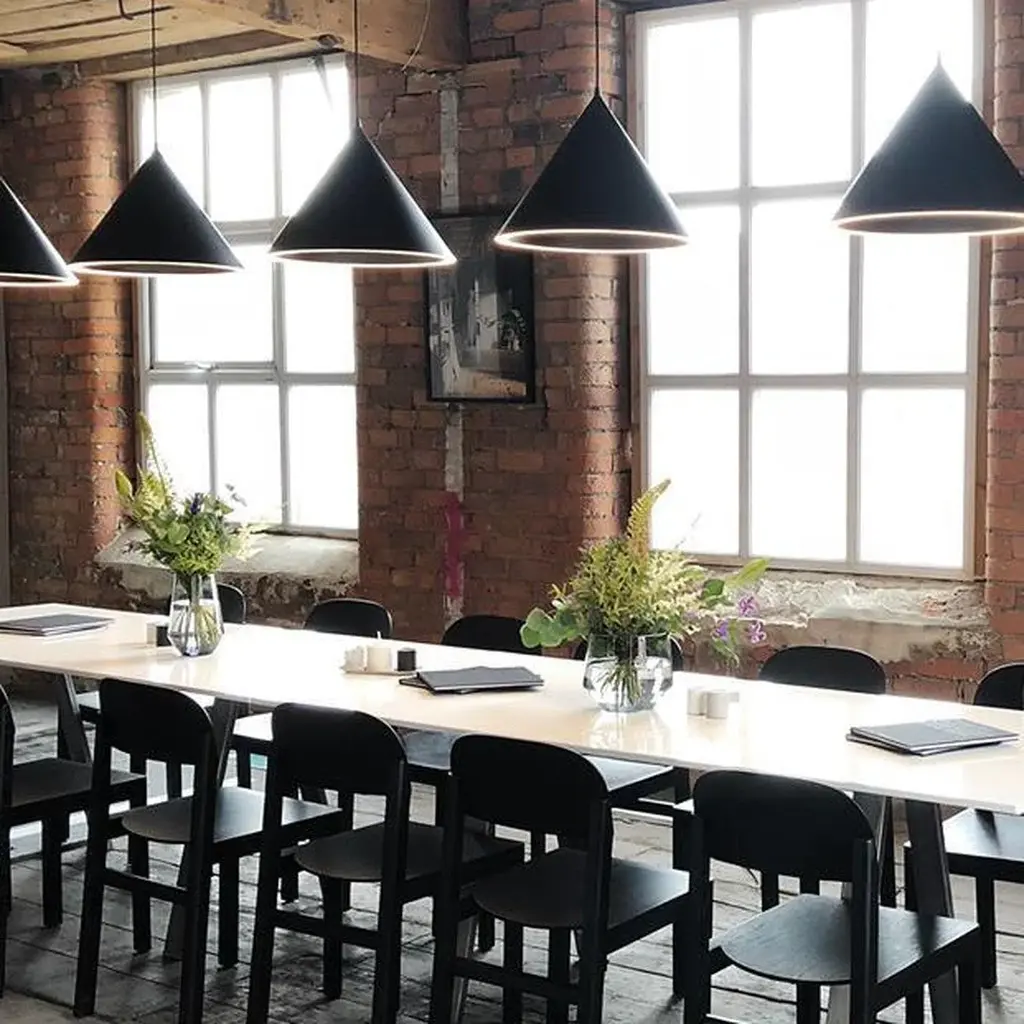 The Annular pendant pairs two primary forms. A conical shade is paired with a perfect ring of light at the perimeter. The cone is evocative of a classic pendant form while the ring shaped light source is boldly graphic and resolutely contemporary. Annular combines and rethinks the two primary forms in a new interpretation of the classic cone pendant.