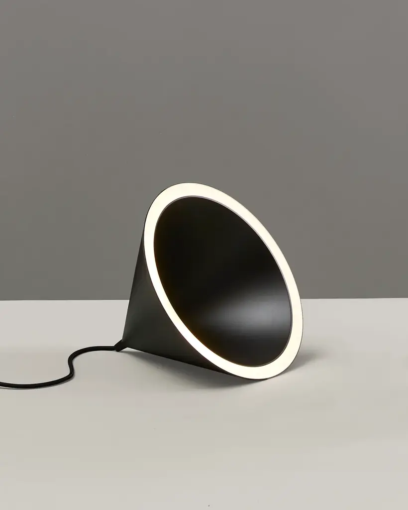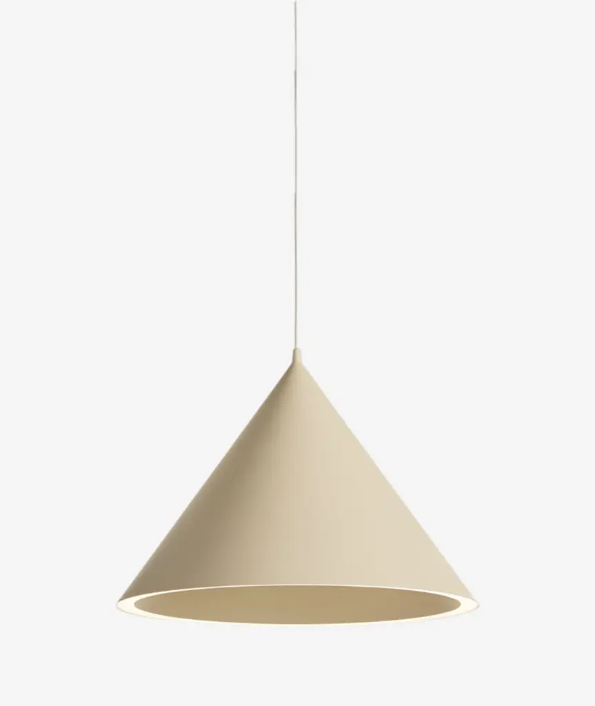 The Annular pendant is a modern interpretation of the classic cone pendant. It pairs two primary forms; a conical shade paired with a perfect ring of light at the perimeter. The innovative use of LED makes the bulb invisible creating a clean expression that makes the Annular pendant ideal for placement above the dining table, sofa arrangement, or in the hallway. The lamp is available in different colors.