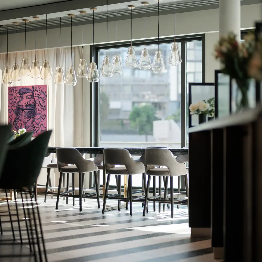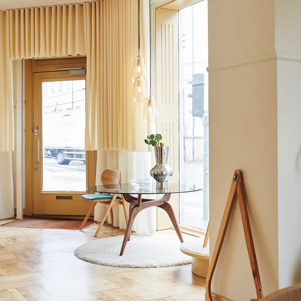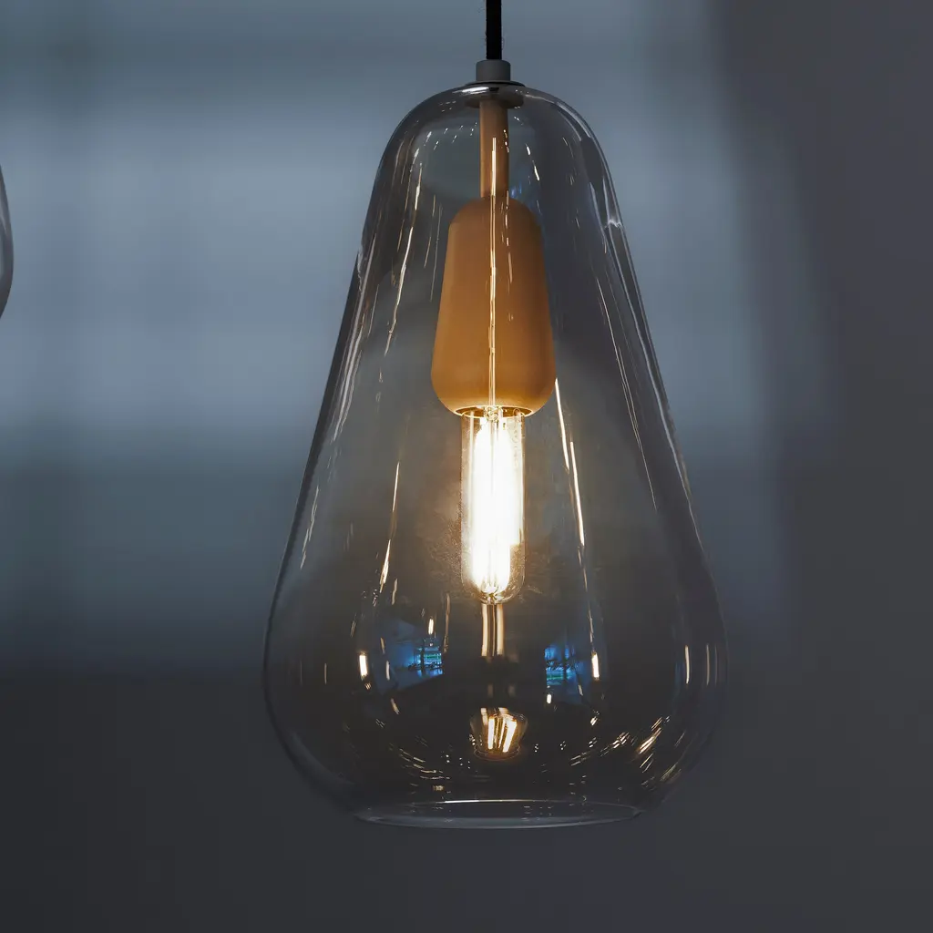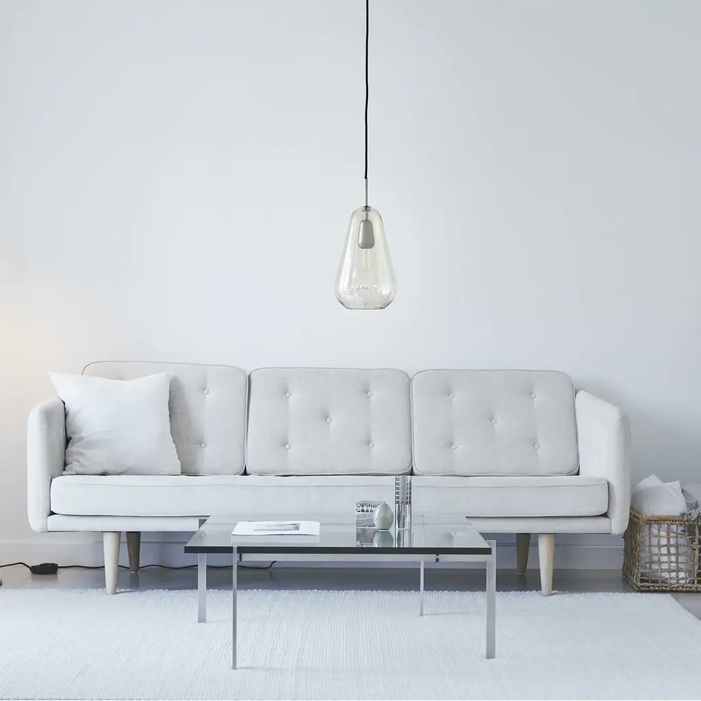 This pendant's droplet-shaped glass shade was inspired by rain drops reflecting the singular tones of Nordic light. Composed of mouth-blown glass handpainted in a delicate golden color and complementary light gold metal, Anoli was conceived by Danish designer Sofie Refer of Copenhagen design brand Nuura who says, "I strive to balance simplicity and grandeur, and create light that has a pure yet sensuous expression." Available in both small and medium sizes, the translucent pendant works perfectly as a single fixture or as multiple pendants in either ordered lines or informal groupings over a table or desk.