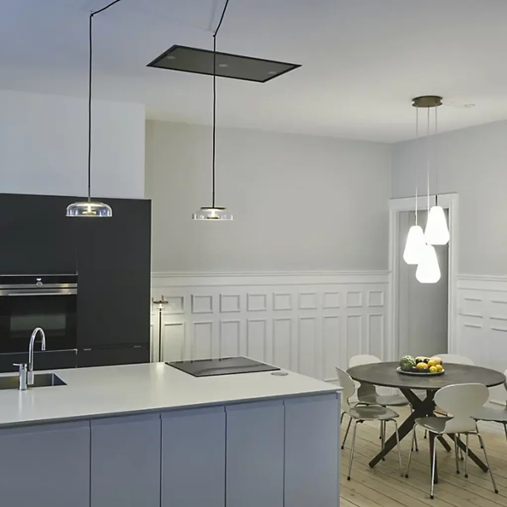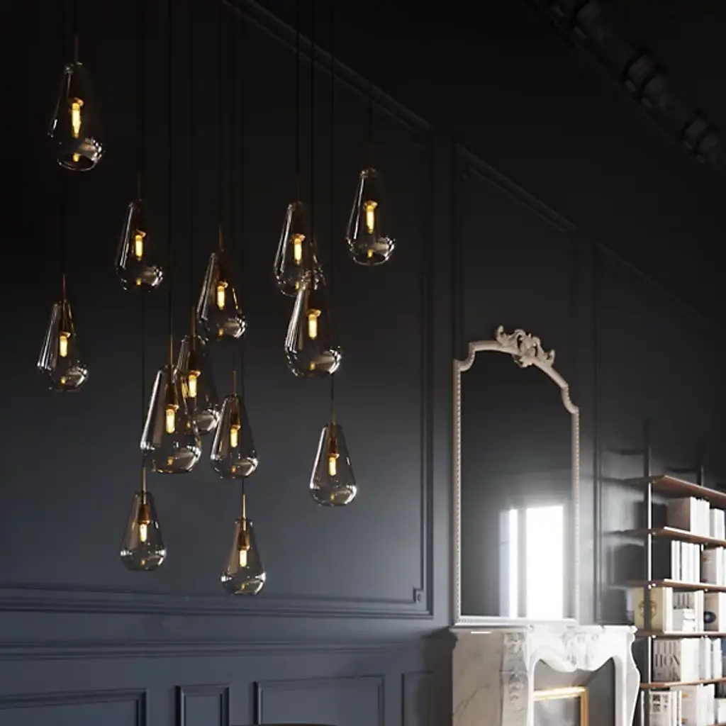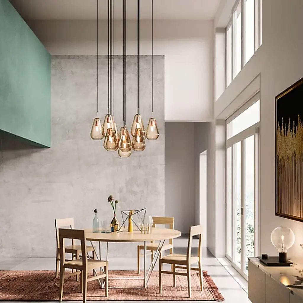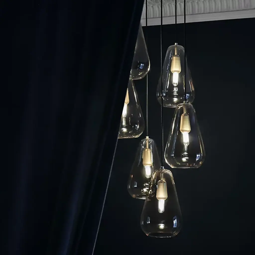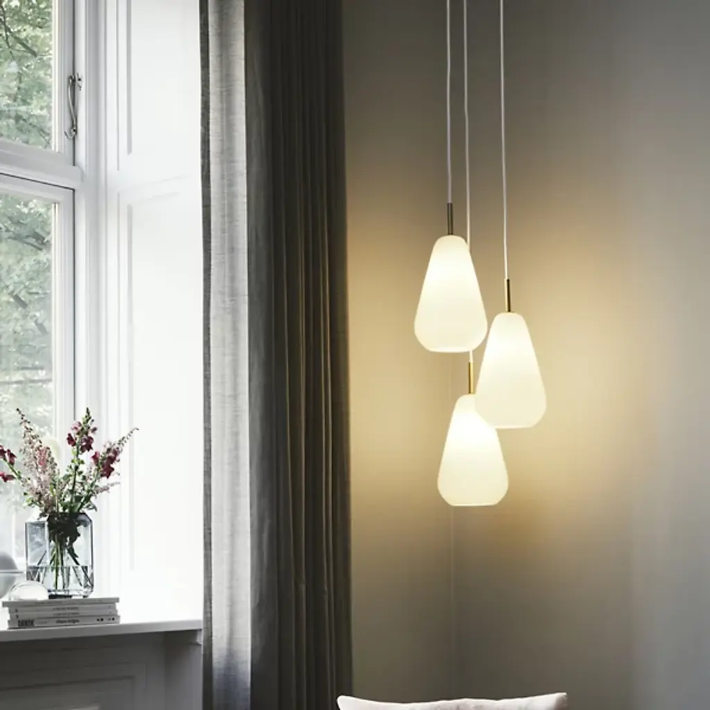 The Anoli Multi-Light Pendant by Nuura is a collection of beautiful, mouth-blown glass drops that have been crafted by skilled artisans. Drawing from Nordic nature, this installation from Danish designer Sofie Refer captures the tranquil look of falling water droplets with a soft, simple silhouette. Paired with slender stems and suspended by textile cords, these lovely glass shades warmly diffuse an even layer of illumination throughout their forms to create a warm, welcoming environment.