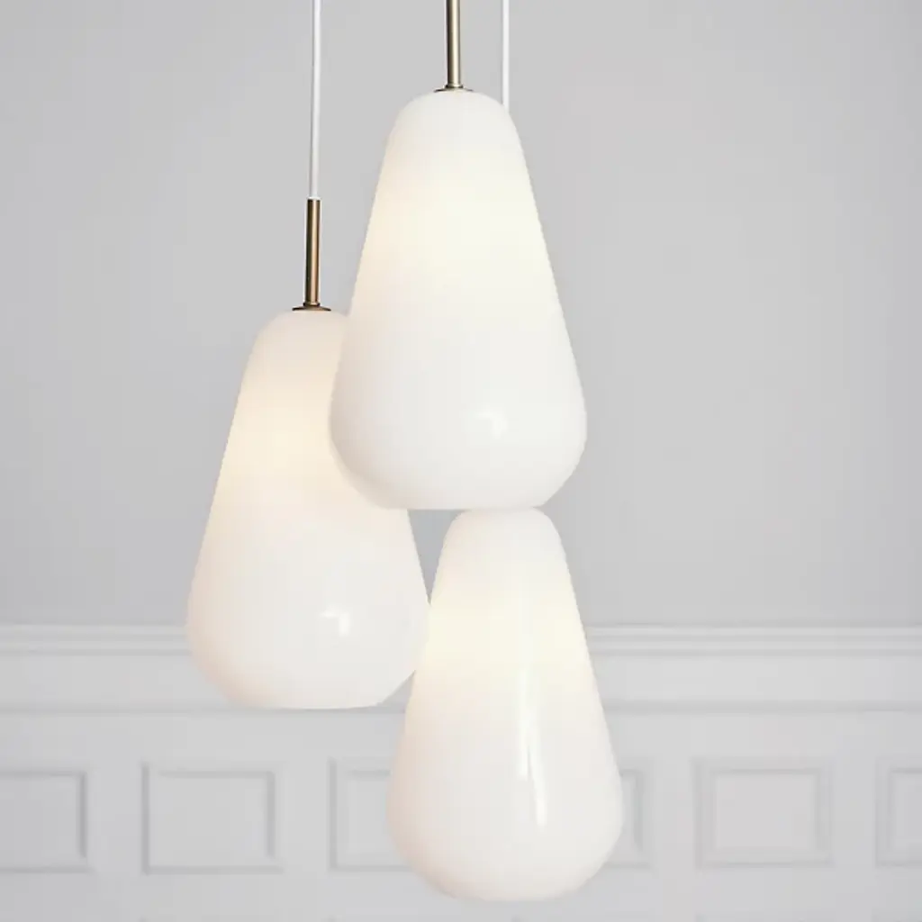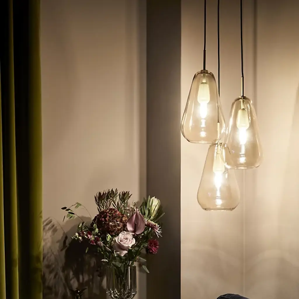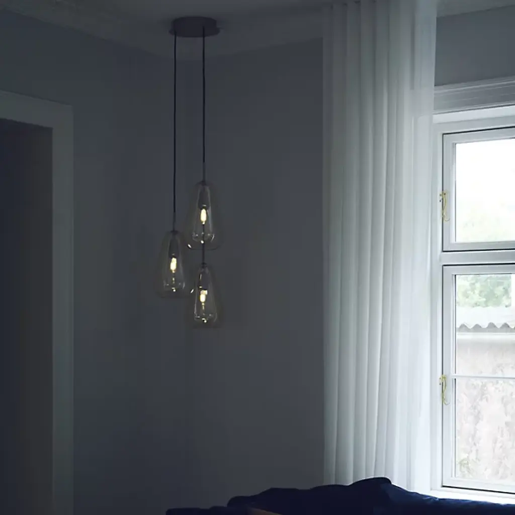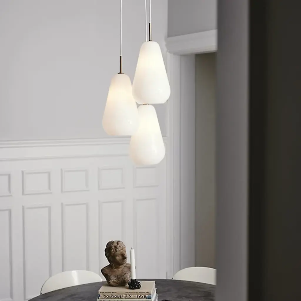 The Anoli Multi-Light Pendant by Nuura is a collection of beautiful, mouth-blown glass drops that have been crafted by skilled artisans. Drawing from Nordic nature, this installation from Danish designer Sofie Refer captures the tranquil look of falling water droplets with a soft, simple silhouette. Paired with slender stems and suspended by textile cords, these lovely glass shades warmly diffuse an even layer of illumination throughout their forms to create a warm, welcoming environment.
