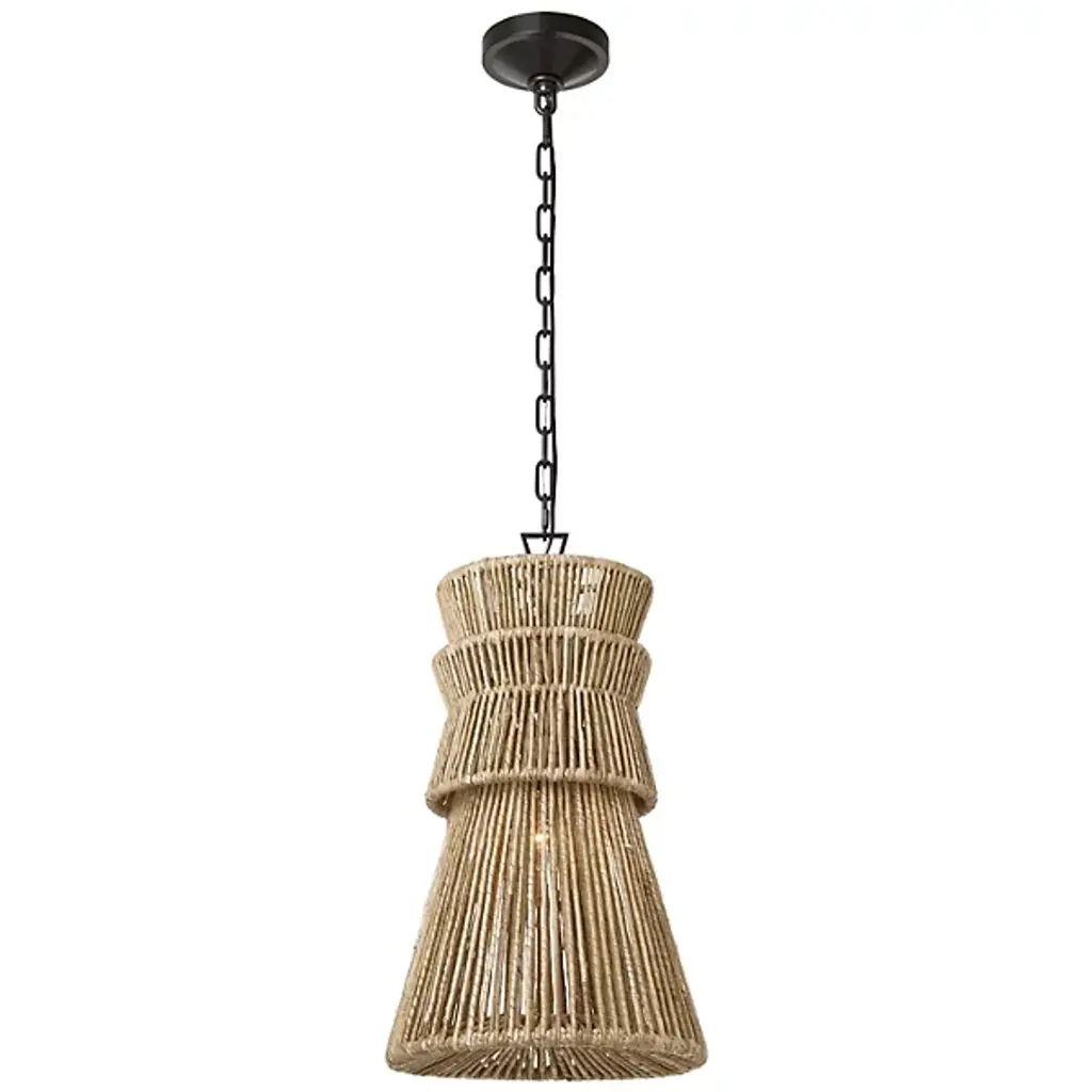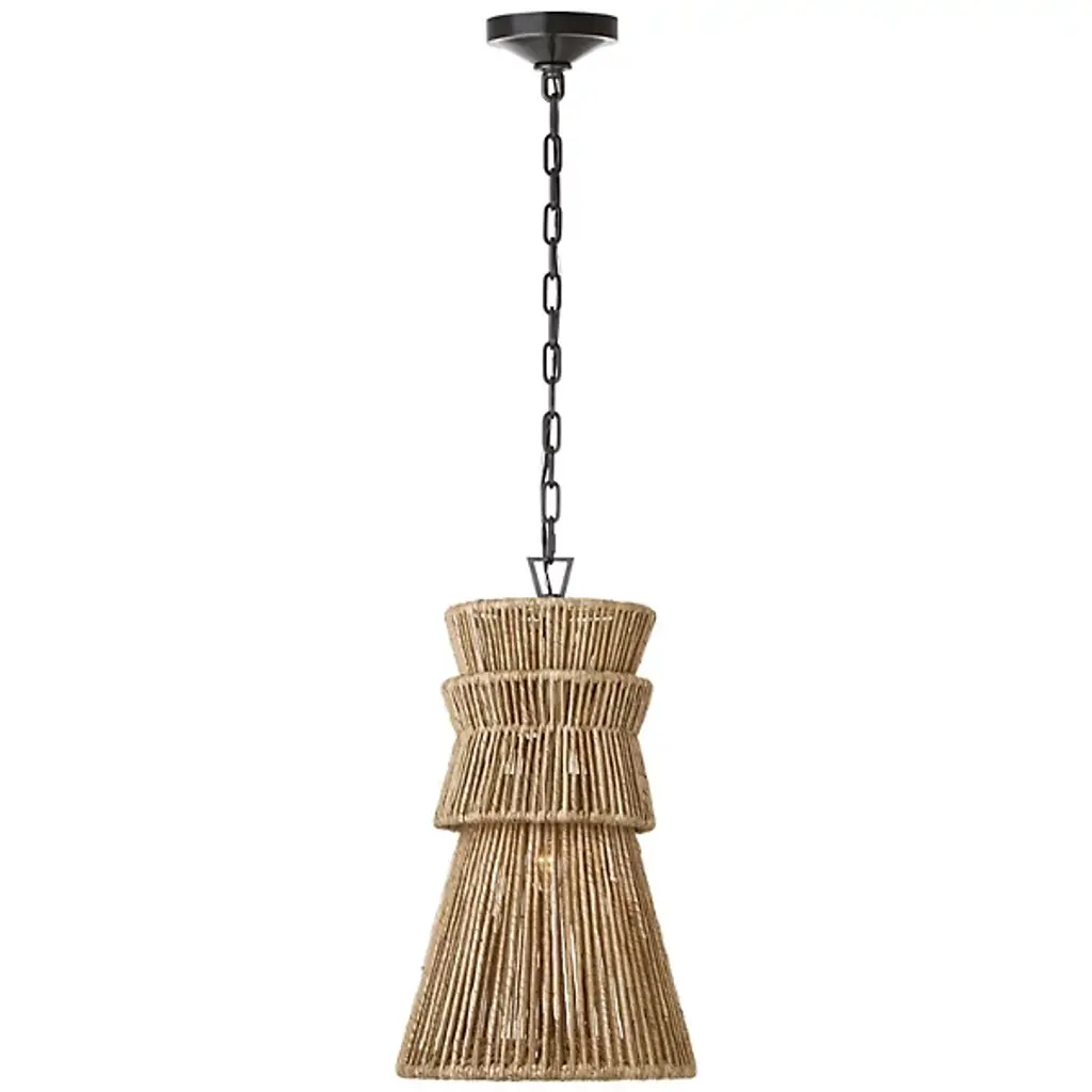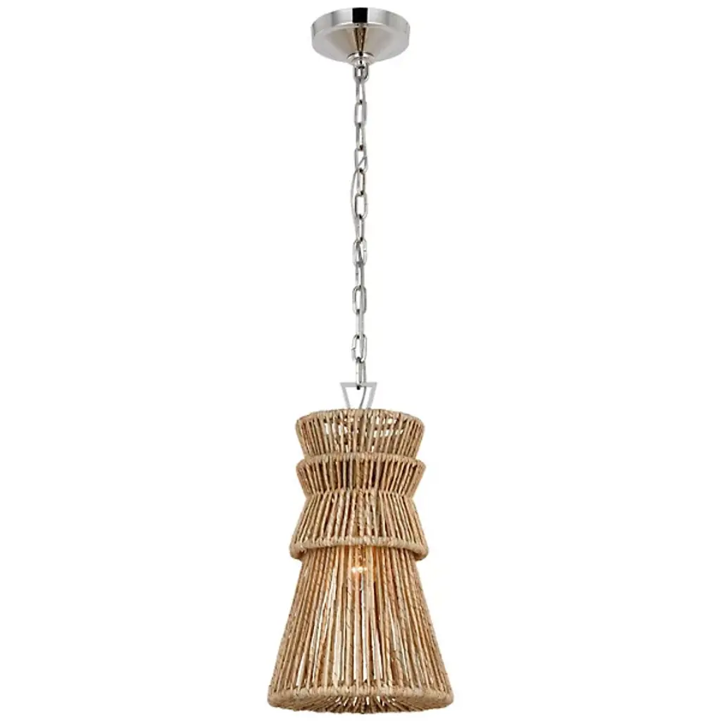 Bring a coastal & nautical vibe to your living space with the Antigua Pendant from Visual Comfort Signature. The Antigua Pendant is designed by Chapman & Myers. This is secured by a lovely, linked chain. This piece is defined by its gorgeous shade of natural abaca. The abaca is meticulously crafted in a tapered fashion which gives this pendant a tiered appearance. The slatted nature of your pendant’s shade allows the light from a brilliant LED to splay effortlessly throughout your environment.