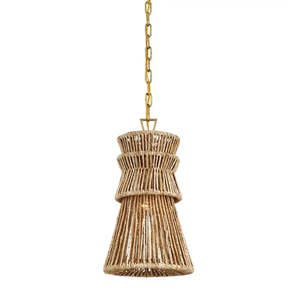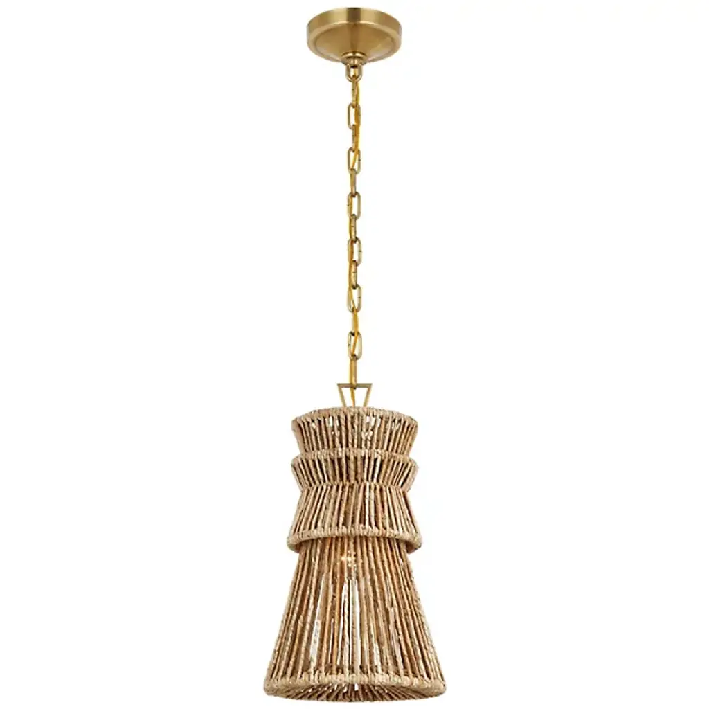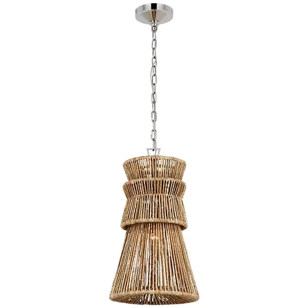 Bring a coastal & nautical vibe to your living space with the Antigua Pendant from Visual Comfort Signature. The Antigua Pendant is designed by Chapman & Myers. This is secured by a lovely, linked chain. This piece is defined by its gorgeous shade of natural abaca. The abaca is meticulously crafted in a tapered fashion which gives this pendant a tiered appearance. The slatted nature of your pendant’s shade allows the light from a brilliant LED to splay effortlessly throughout your environment.