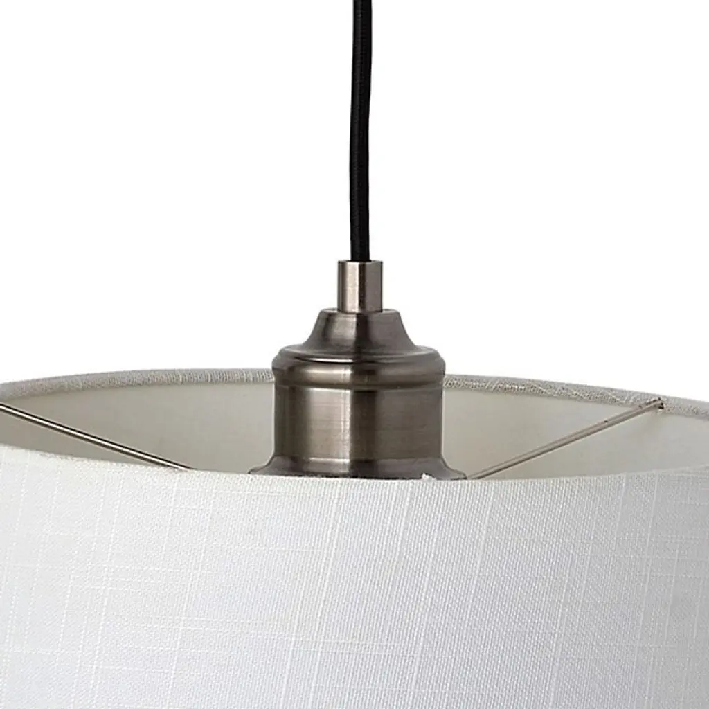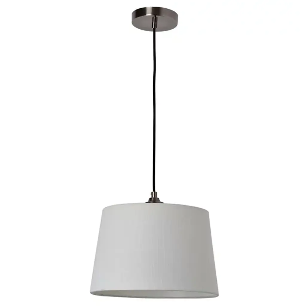 The Antique Pewter Pendant by Adesso gives your decorative arrangement a contemporary look. A disc-shaped ceiling canopy secures to your ceiling, providing the foundation for a steel downrod. At the end of this pendant’s fine metalwork rests a bin-shaped shade of white textured fabric for the housing of a luminous, incandescent bulb.