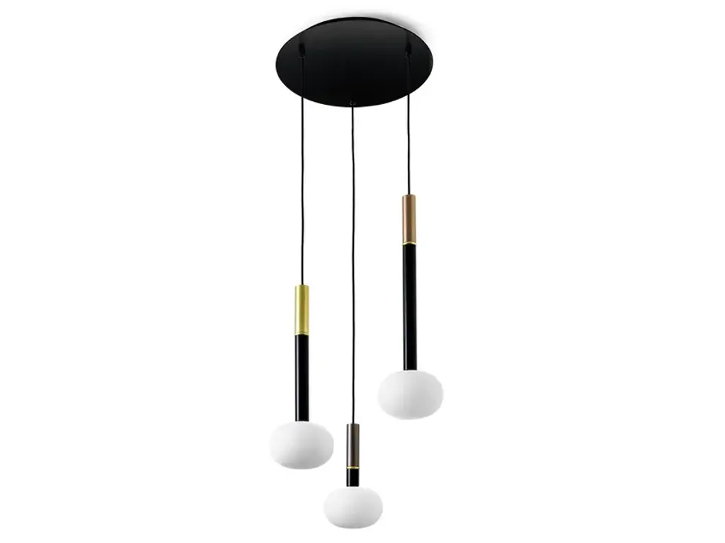 Triple drop pendant featuring soft curves and the inclusion of metals carefully handcrafted to transition from parchment to magnificent glass, culminating in a stunning beam of light. Suspended by connectable rod segments for a customizable length. Available in a wide range of exquisite finishes, including our five standard finishes and our newest Soft Ombre Bronze & Soft Ombre Silver, with the choice of two parchment colors, Charcoal and Smoke. Also available with no parchment.