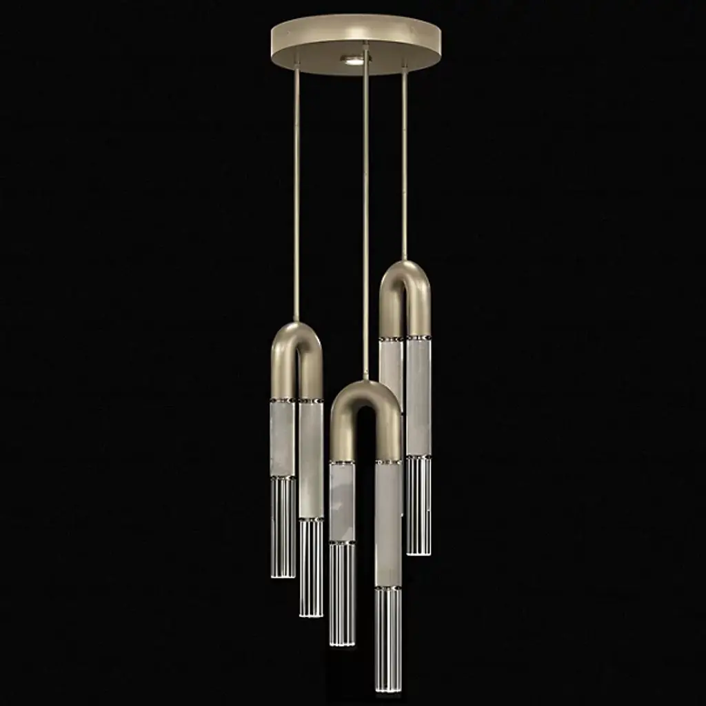The Antonia Multi-Light LED Pendant by Fine Art Handcrafted radiates sophistication with its soft curves and meticulously crafted metals that transition gracefully from parchment to magnificent glass. This exquisite design produces a stunning light beam, casting a warm and inviting glow. The pendant's length can be customized using connectable rod segments, enabling you to tailor it to your unique space. Illuminate your surroundings with this refined luminary, creating a captivating ambiance and a beautiful focal point in your chosen setting.