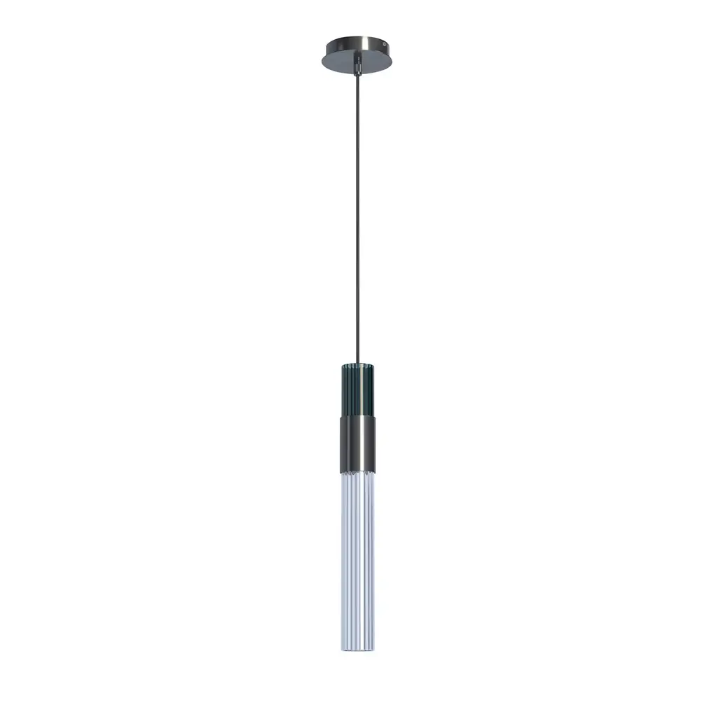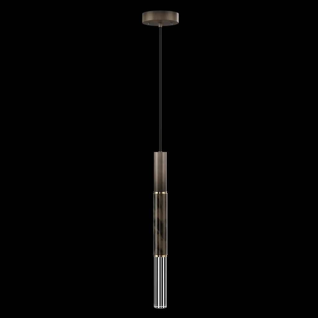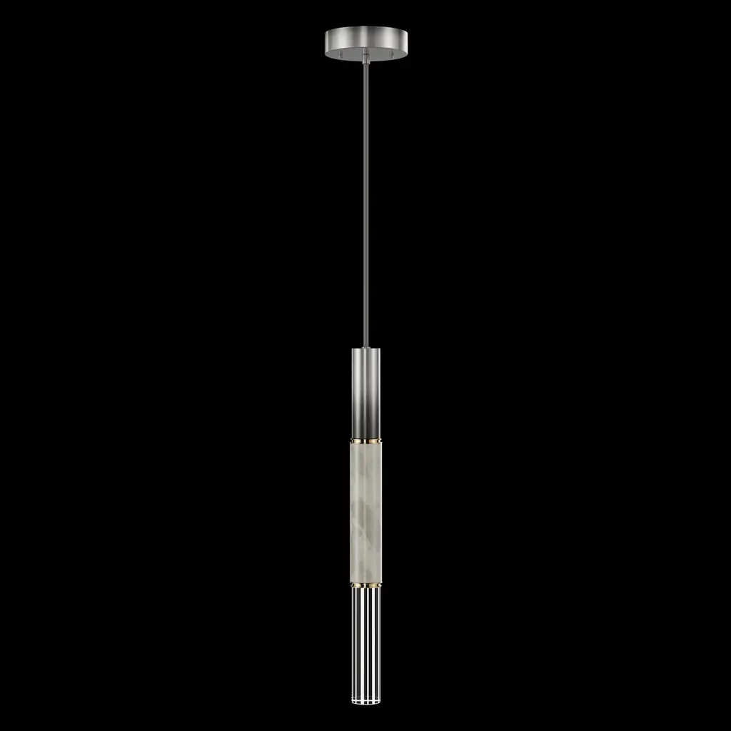 Suspended by an adjustable braided cord, this LED fixture features straight tubular lines and the inclusion of metals carefully handcrafted to transition from parchment to magnificent glass, culminating in a stunning beam of light. Available in a wide ran