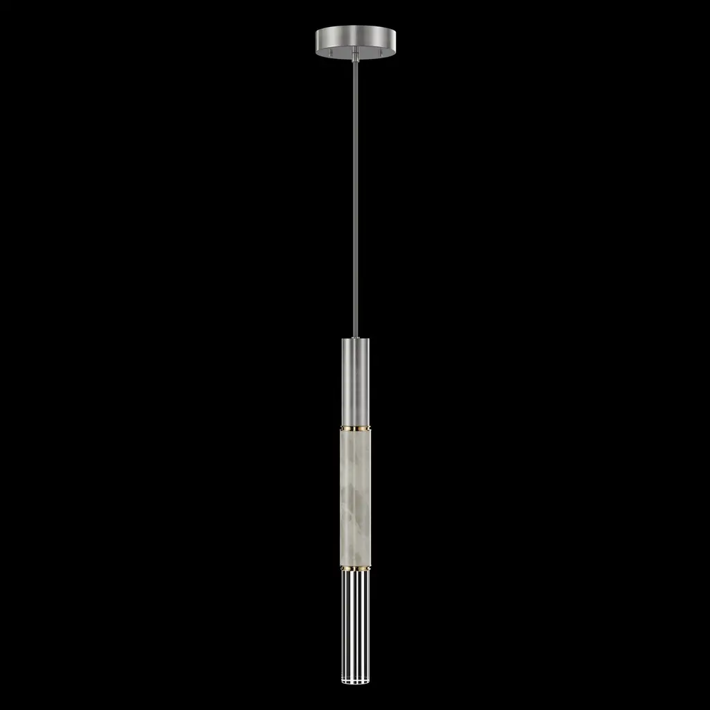 Suspended by an adjustable braided cord, this LED fixture features straight tubular lines and the inclusion of metals carefully handcrafted to transition from parchment to magnificent glass, culminating in a stunning beam of light. Available in a wide ran