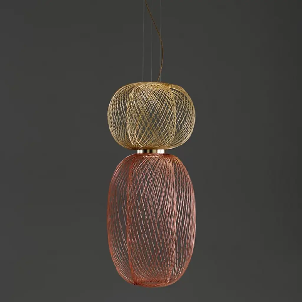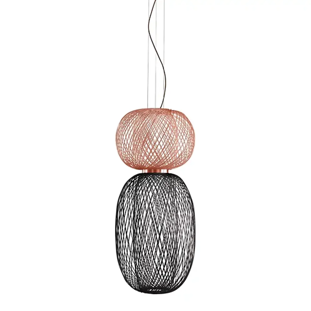 Designer Stephen Burks tells the stories of the world's artisans through his pieces. The Anwar LED Large Pendant from Prachilna is no different; it celebrates the universal motif of the woven basket by transforming its traditionally organic strands into welded steel rods that number nearly 100. The piece balances a multi-ethnic aesthetic with a stylized contemporary personality. It takes hold of a space as it hangs in the air in an airy multi-scale form. To create each basket-like form, metalsmiths carefully bend steel rods into swift diagonals and weld them onto a ring. The result is a multi-layering of contours that delights the same from any angle. A dual-sided LED glow transforms the fine rods into a light show of stunning highlights. The LEDs sift through the weave to create a seductive ambiance.