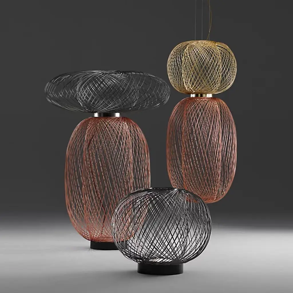 Designer Stephen Burks tells the stories of the world's artisans through his pieces. The Anwar LED Large Pendant from Prachilna is no different; it celebrates the universal motif of the woven basket by transforming its traditionally organic strands into welded steel rods that number nearly 100. The piece balances a multi-ethnic aesthetic with a stylized contemporary personality. It takes hold of a space as it hangs in the air in an airy multi-scale form. To create each basket-like form, metalsmiths carefully bend steel rods into swift diagonals and weld them onto a ring. The result is a multi-layering of contours that delights the same from any angle. A dual-sided LED glow transforms the fine rods into a light show of stunning highlights. The LEDs sift through the weave to create a seductive ambiance.