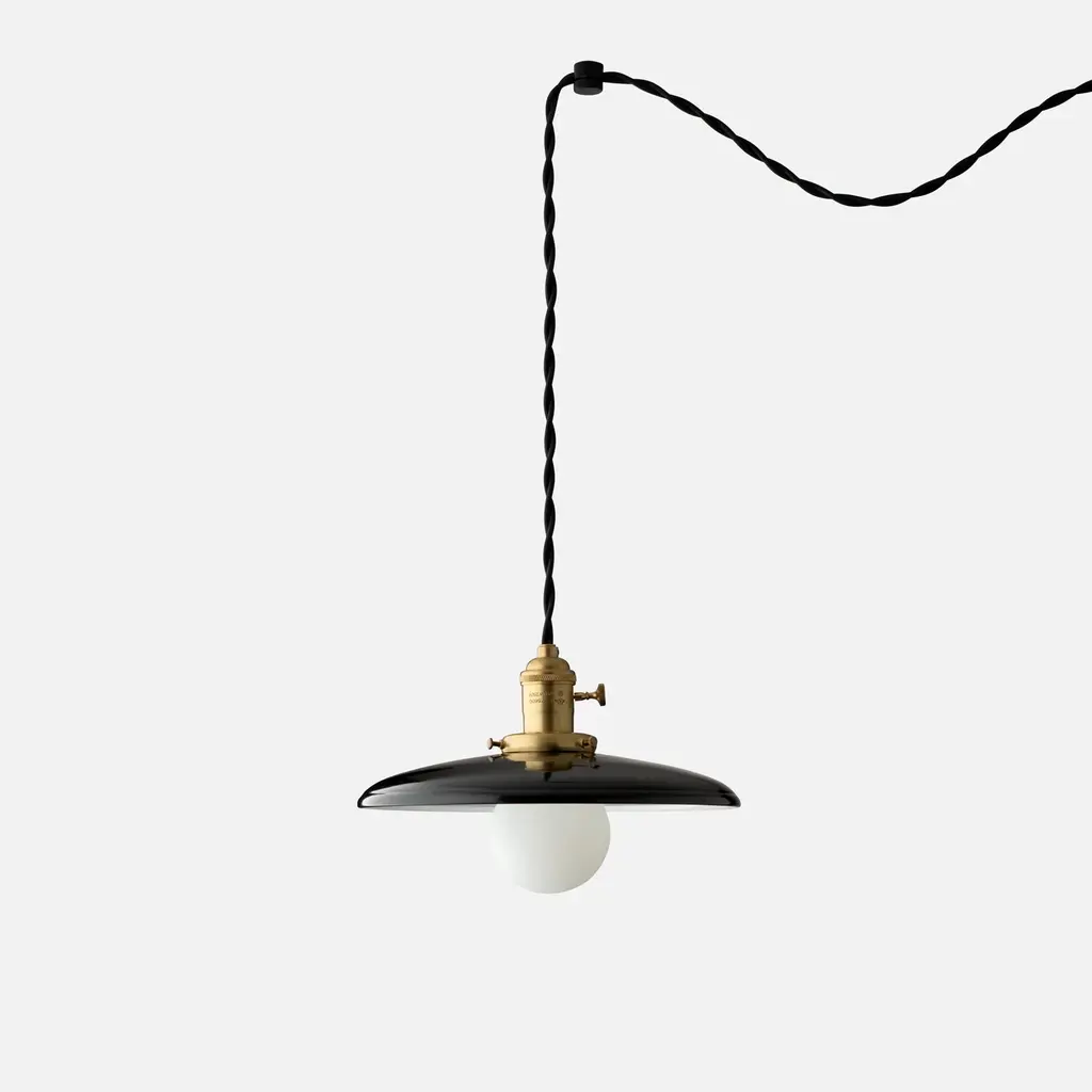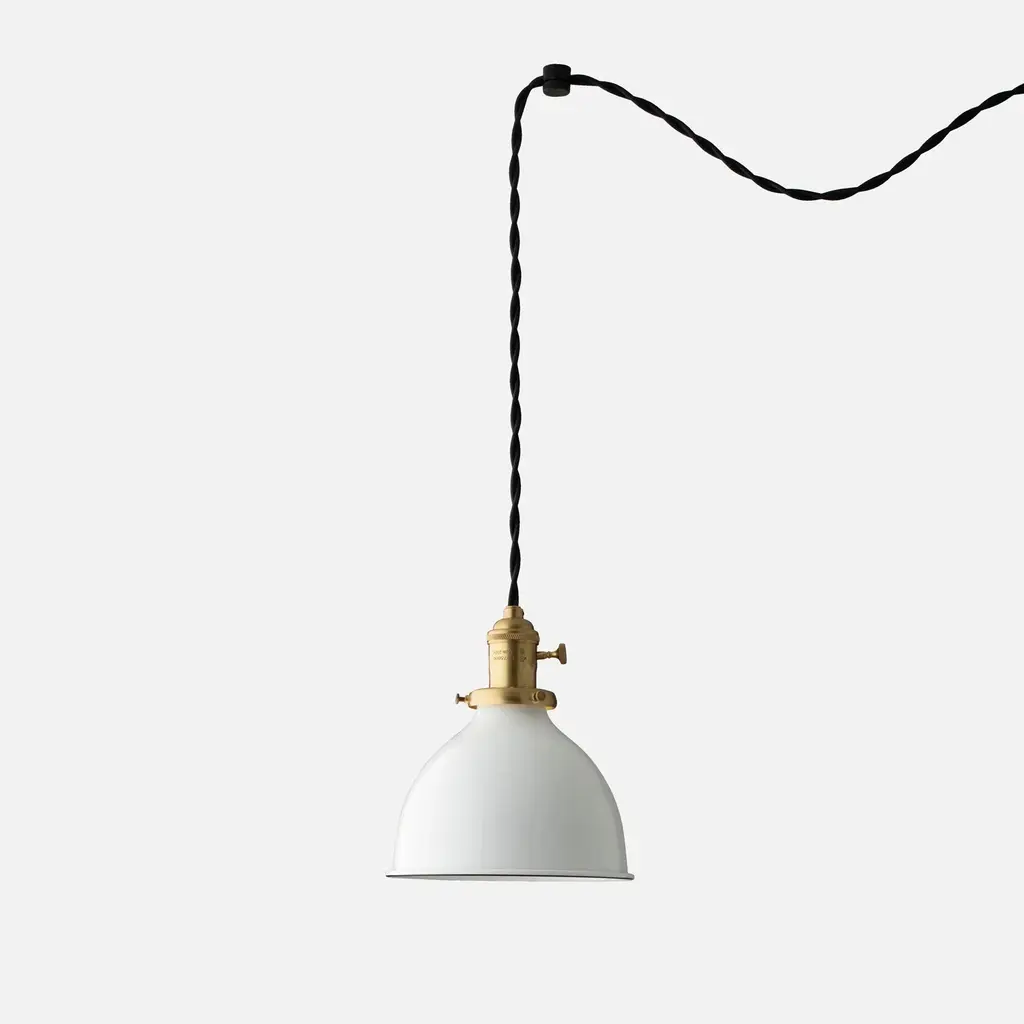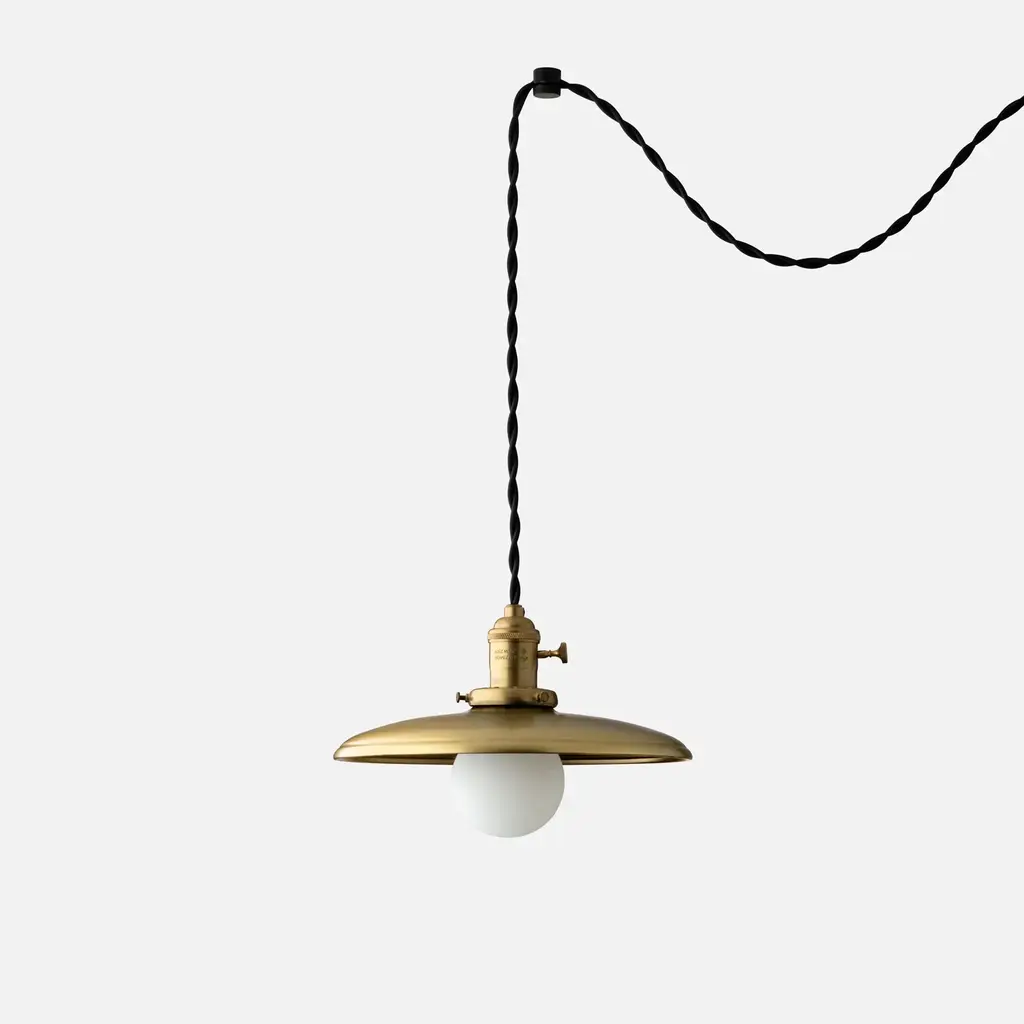 Inspired by vintage industrial pendants common in the early 20th century, the Apartment Plug-In Pendant 2.25” brings accessible elegance to any space. Its 2.25” fitter can be omitted for an exposed bulb treatment, or can be used to support one of our expertly crafted light shades. Kit comes complete with two knurled brass swag hooks (finished to match the socket and fitter) 20 feet of twisted cloth cord, and a wall plug. These features make the Apartment Plug-In Pendant ideal for any space where locating a junction box may be difficult or impossible. Assembled in our Portland, Ore. factory using ethically-sourced domestic and global components. A Schoolhouse Original.