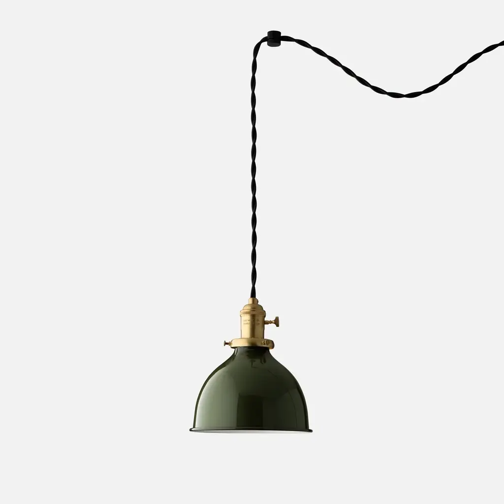 Inspired by vintage industrial pendants common in the early 20th century, the Apartment Plug-In Pendant 2.25” brings accessible elegance to any space. Its 2.25” fitter can be omitted for an exposed bulb treatment, or can be used to support one of our expertly crafted light shades. Kit comes complete with two knurled brass swag hooks (finished to match the socket and fitter) 20 feet of twisted cloth cord, and a wall plug. These features make the Apartment Plug-In Pendant ideal for any space where locating a junction box may be difficult or impossible. Assembled in our Portland, Ore. factory using ethically-sourced domestic and global components. A Schoolhouse Original.