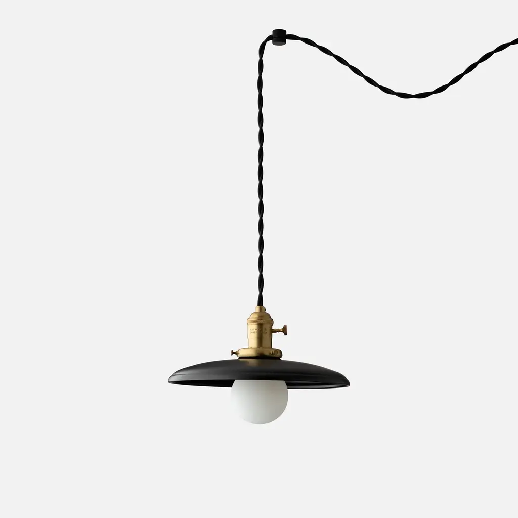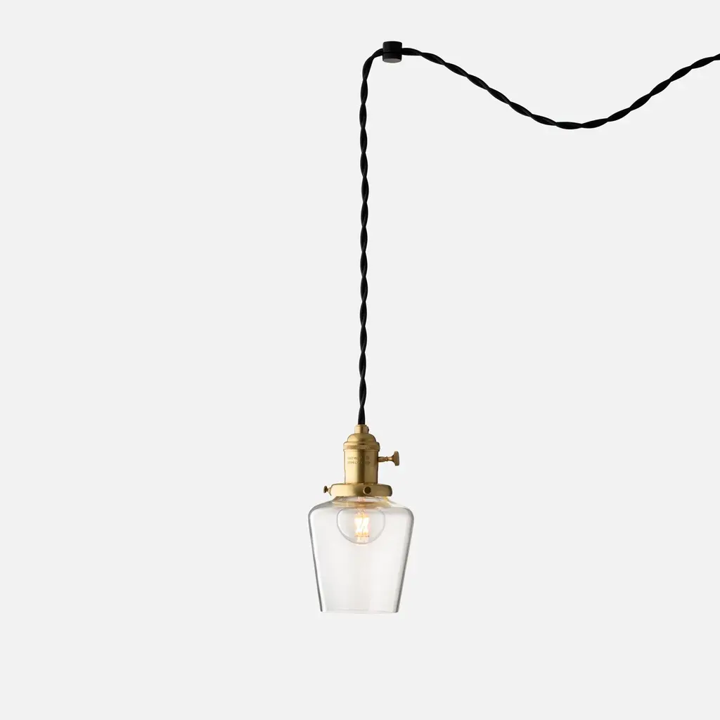 Inspired by vintage industrial pendants common in the early 20th century, the Apartment Plug-In Pendant 2.25” brings accessible elegance to any space. Its 2.25” fitter can be omitted for an exposed bulb treatment, or can be used to support one of our expertly crafted light shades. Kit comes complete with two knurled brass swag hooks (finished to match the socket and fitter) 20 feet of twisted cloth cord, and a wall plug. These features make the Apartment Plug-In Pendant ideal for any space where locating a junction box may be difficult or impossible. Assembled in our Portland, Ore. factory using ethically-sourced domestic and global components. A Schoolhouse Original.