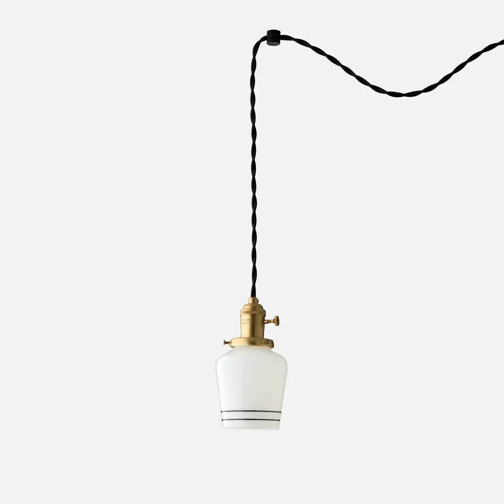 Inspired by vintage industrial pendants common in the early 20th century, the Apartment Plug-In Pendant 2.25” brings accessible elegance to any space. Its 2.25” fitter can be omitted for an exposed bulb treatment, or can be used to support one of our expertly crafted light shades. Kit comes complete with two knurled brass swag hooks (finished to match the socket and fitter) 20 feet of twisted cloth cord, and a wall plug. These features make the Apartment Plug-In Pendant ideal for any space where locating a junction box may be difficult or impossible. Assembled in our Portland, Ore. factory using ethically-sourced domestic and global components. A Schoolhouse Original.