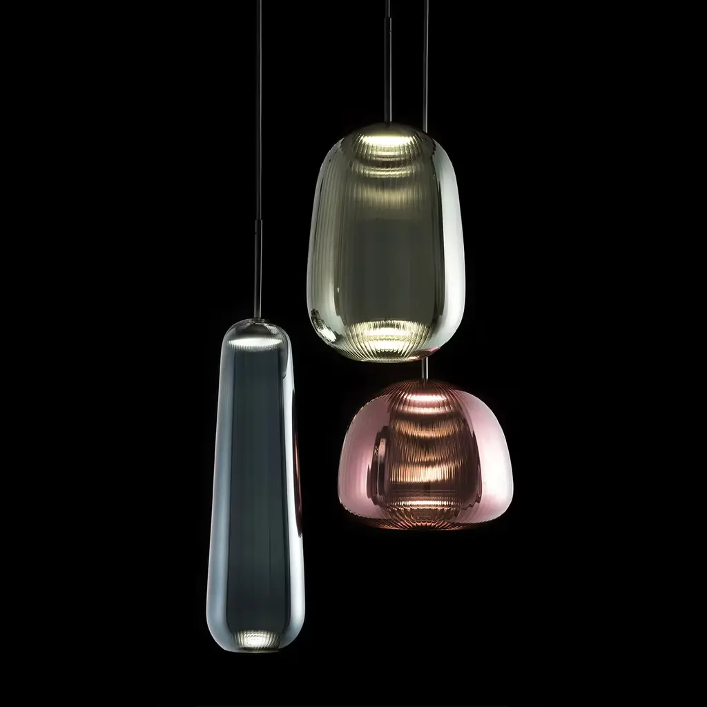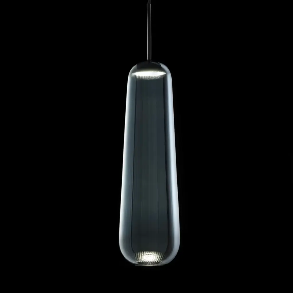 Available in sapphire blue or frosted ruled glass, the Api Pendant Light creates a pure lounge vibe, no matter where you display it. The light can be used with a hidden LED for a truly original illumination experience. Light source: 12 W LED, 2700 K or 12 W 220 V LED (E27 socket). Cable: 200 cm.