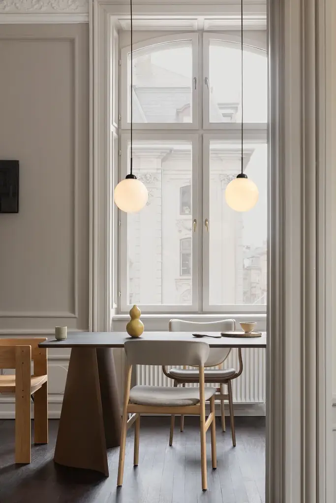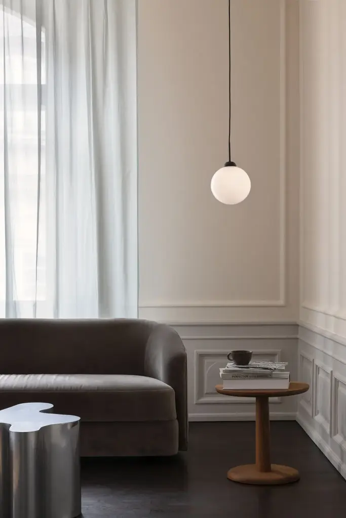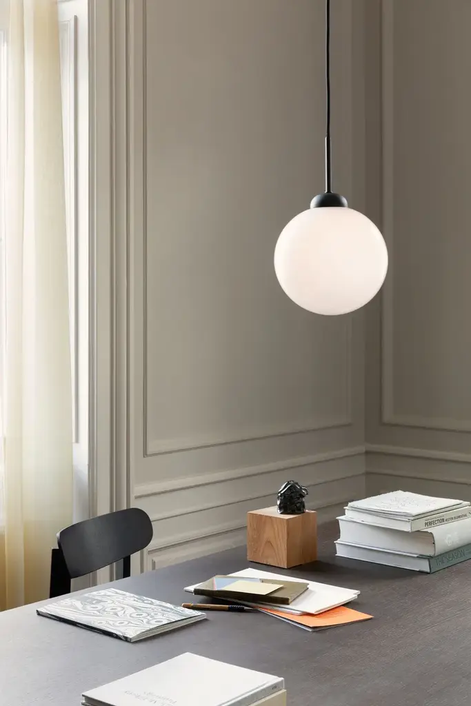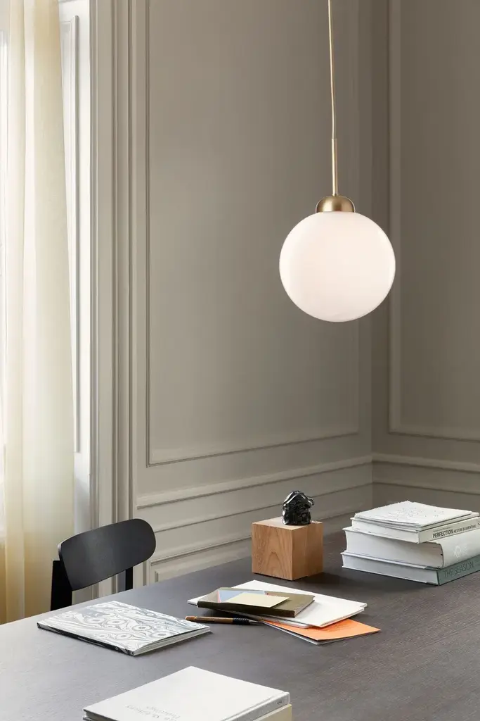Apiales 1 Large is a large pendant addition to our Apiales collection. The single globe of opal white glass offers an even light and is suspended from a sleek metal stem in brushed brass finish – a combination that coordinates well with other metals and colours. Apiales 1 Large can be installed as a single fixture or in a series, making this pendant a versatile choice for the living space.Light source: Socket: G9 Max wattage: 5W LED Voltage (V): 220-240V / 120VLight source not included Dimmable if installed with appropriate dimmable LED light source(s) suitable for your dimmer circuit.With inspiration from flowers, Sofie Refer has designed the chandelier collection, Apiales.The collection consists of chandeliers with mouth-blown glass globes and are available in many finishes.From a specially-produced canopy, the arms unfold like flower stalks from which light is spread with grace.Suitable for residential homes, restaurants and hotels.