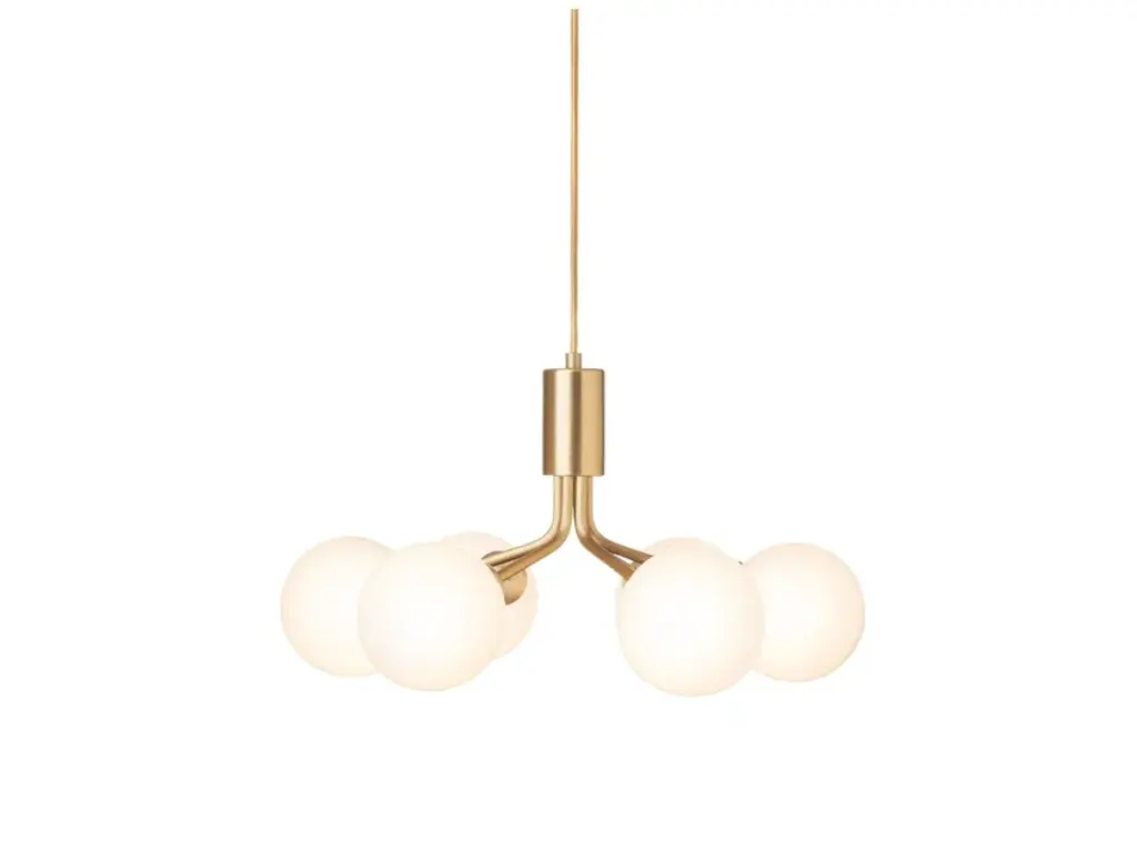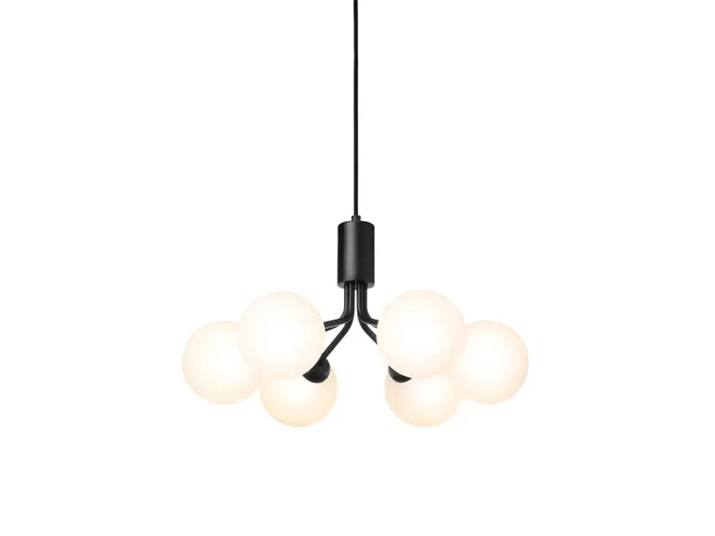 Apiales 6 is an intermediate version, complementing the chandeliers and single pendants from our Apiales collection. With inspiration from flowers, Apiales 6 unfolds the satin black or brushed brass metal stems into opal white glass globes, offering a soft and comfortable expression to rooms with limited space available. Ceiling plate included.Light source: Socket: G9Max wattage: 5W LEDVoltage (V): 220-240V / 120VLight source not includedDimmable if installed with appropriate dimmable LEDlight source(s) suitable for your dimmer circuit.With inspiration from flowers, Sofie Refer has designed the chandelier collection, Apiales.The collection consists of chandeliers with mouth-blown glass globes and are available in many finishes.From a specially-produced canopy, the arms unfold like flower stalks from which light is spread with grace.Suitable for residential homes, restaurants and hotels.