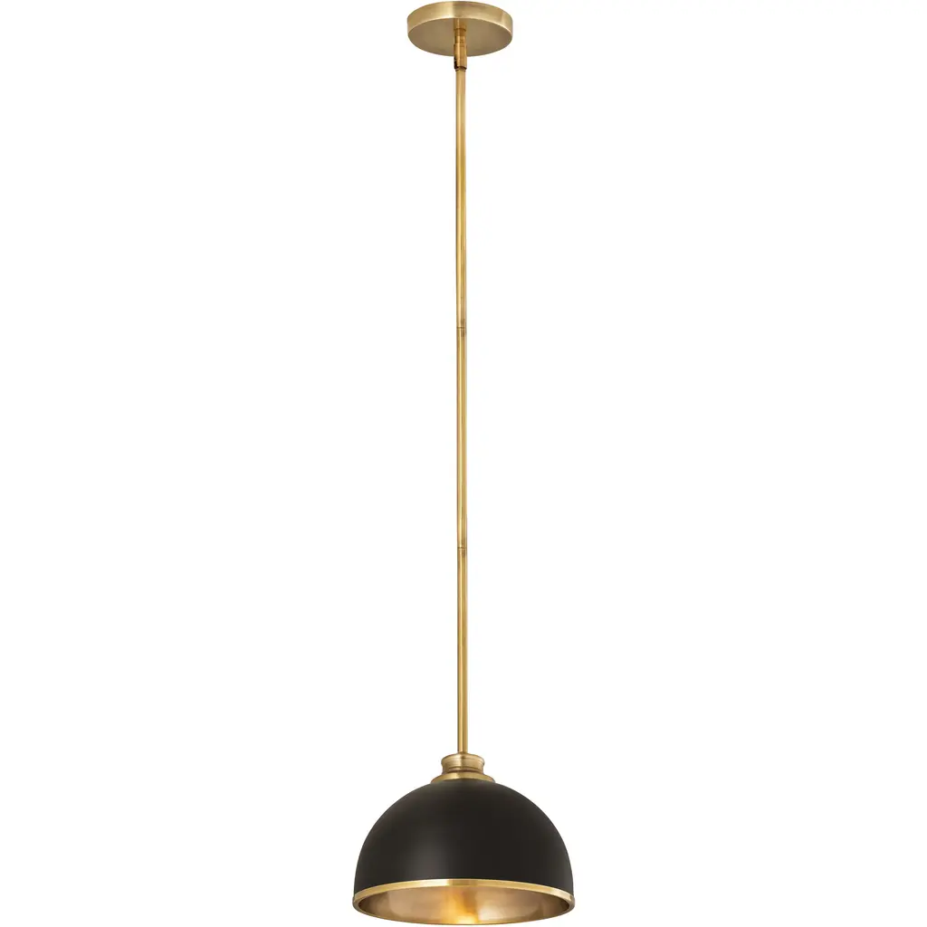 This 1 light Pendant from the Apollo collection by Robert Abbey will enhance your home with a perfect mix of form and function. The features include a Antique Brass with Matte Black finish applied by experts. This item qualifies for free shipping!