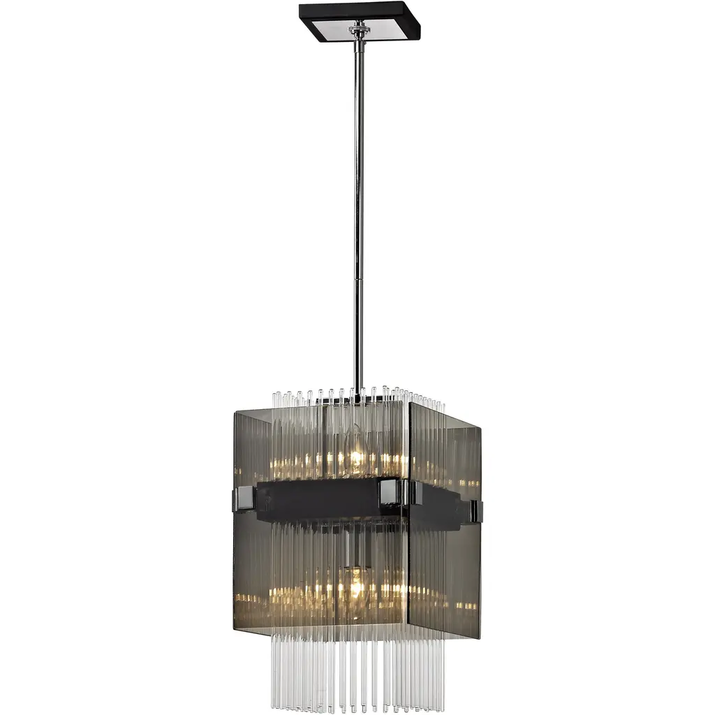 Apollo 2 Light 10.5 Inch Dark Bronze Polished Chrome Pendant Ceiling Light, Smoked And Clear Glass