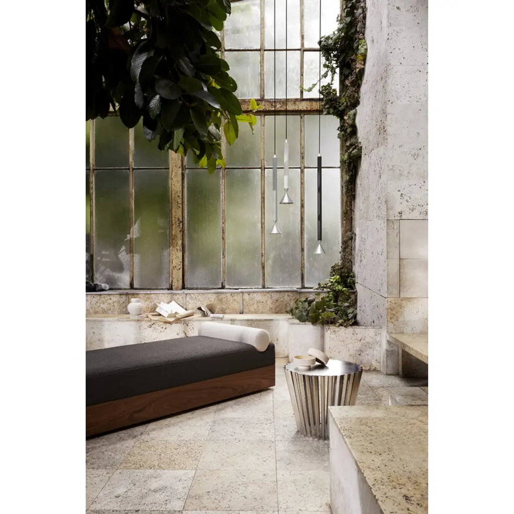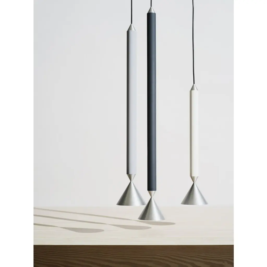 The Apollo 39 pendant lamp by Pholc is a fascinating combination of dynamic and static qualities. Designed by Broberg & Ridderstråle, the elegant pendant consists of conical details attached to a painted aluminum tube, creating an emphasis on material and color as well as the downward direction of light typical of pendants. Due to its slender yet striking shape, the Apollo 39 pendant looks great on its own or hung in a cluster or a row for example above a dining table.