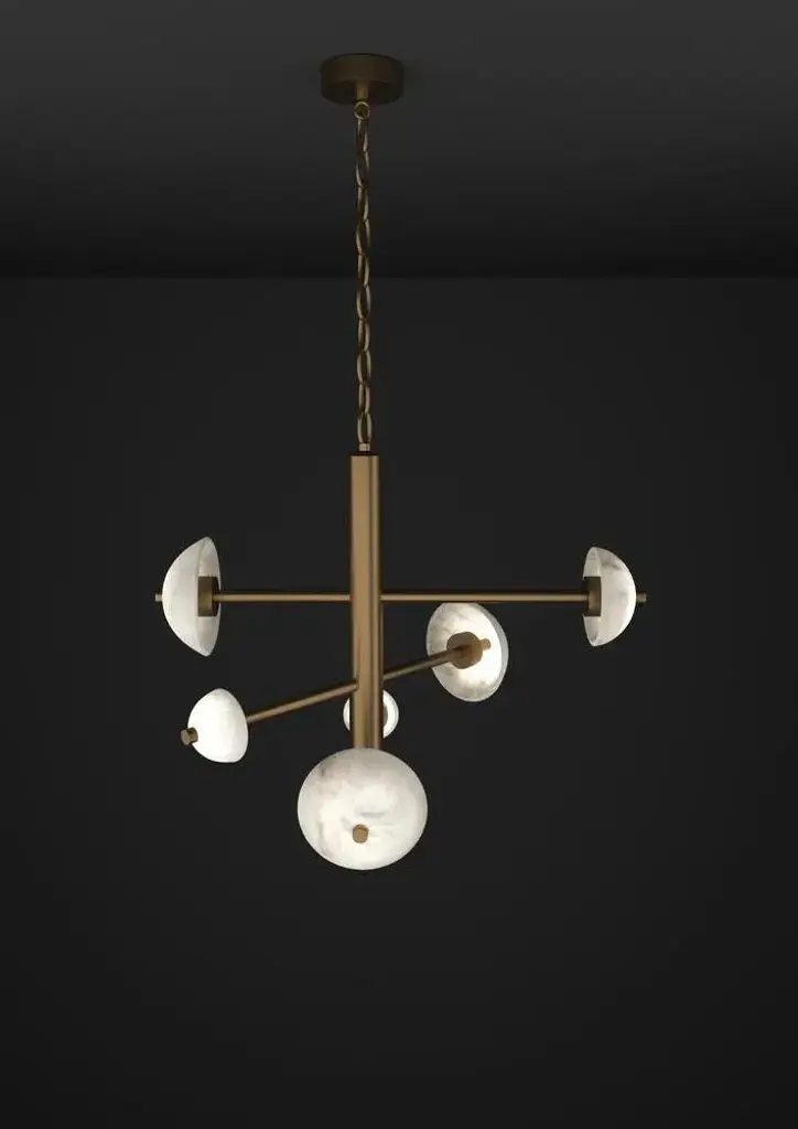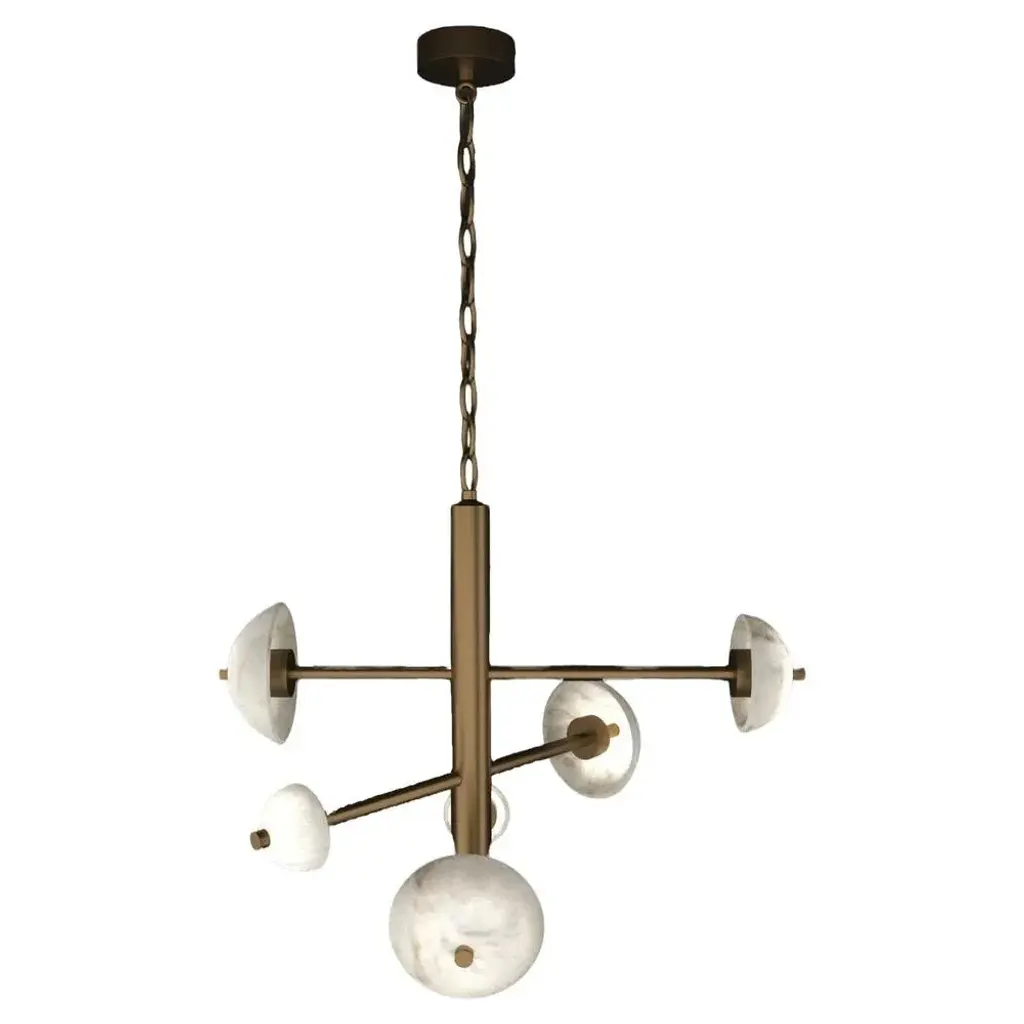 Apollo bronze pendant lamp by alabastro italiano dimensions: d 70,5 x w 54 x h 64 cm. Materials: white alabaster and bronze. Available in different finishes: shiny silver, bronze, brushed brass, ruggine of florence, brushed burnished, shiny gold, brushed black, freedom green, shiny black and copper. Please contact us. All our lamps can be wired according to each country. If sold to the usa it will be wired for the usa for instance. Alabaster domes of various diameters and tubular elements of different widths give dynamism to this exclusive piece while maintaining a perfect balance of style. Named apollo in honour of the greek god who pulled the chariot of the sun, the serie is inspired by this peculiarity; a metal structure pulls a series of luminescent half spheres. After years of experience in the family business, which specializes in design and lighting, riccardo and alberto ongarato found the brand alabastro italiano. Each project is conceived and designed to give a strong sign of recognizability and uniqueness. The use of precious materials such as alabaster, brass, leather and blown glass, worked by the skilful hands of our craftsmen, are combined to create “timeless” objects. From the depths of the earth to the light of the sun. Alabastro italiano care about these extremes and transcends them in a creative dynamic that emphasizes simplicity and clean-cut lines. The company has created an entirely new project made in italy, revolutionizing the previously existing collections into eternal and evergreen lighting elements. By designing clean-cut and original lines, built-in with the latest technology and continuously innovating, alabastro italiano has never lost sight of its goal: perfection. The result of this work is an extraordinary collection of alabaster lightings. Alabaster needs human hands to come to life. The charm of these stone objects comes from their uniqueness, from the fact that they come from the hand of those who has left a mark and a memory with their work, each grain makes each piece unique. Alabaster needs human hands to come to life. The charm of these stone objects comes from their uniqueness, from the fact that they come from the hand of those who has left a mark and a memory with their work, each grain makes each piece unique. Alabaster is a material that leaves little traces of magic all around it. It is difficult to identify the exact point where the material ends and its reflection begins. It is impossible to understand how far the light sinks in its soft transparency. It changes according to the positions in which it is placed, depending on the point of view. Alabaster is a compact and rare stone that lays down very precise laws requires a familiarity that only italian craftsmen possess. Alabastro italiano collaborates with each client to create a unique project. Starting from the advice for better architectural lighting, it brings its know-how, materials, design and creative inspiration to interior architects and interior designers. up to 250v (europe/uk standard).