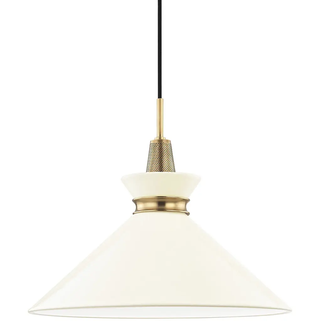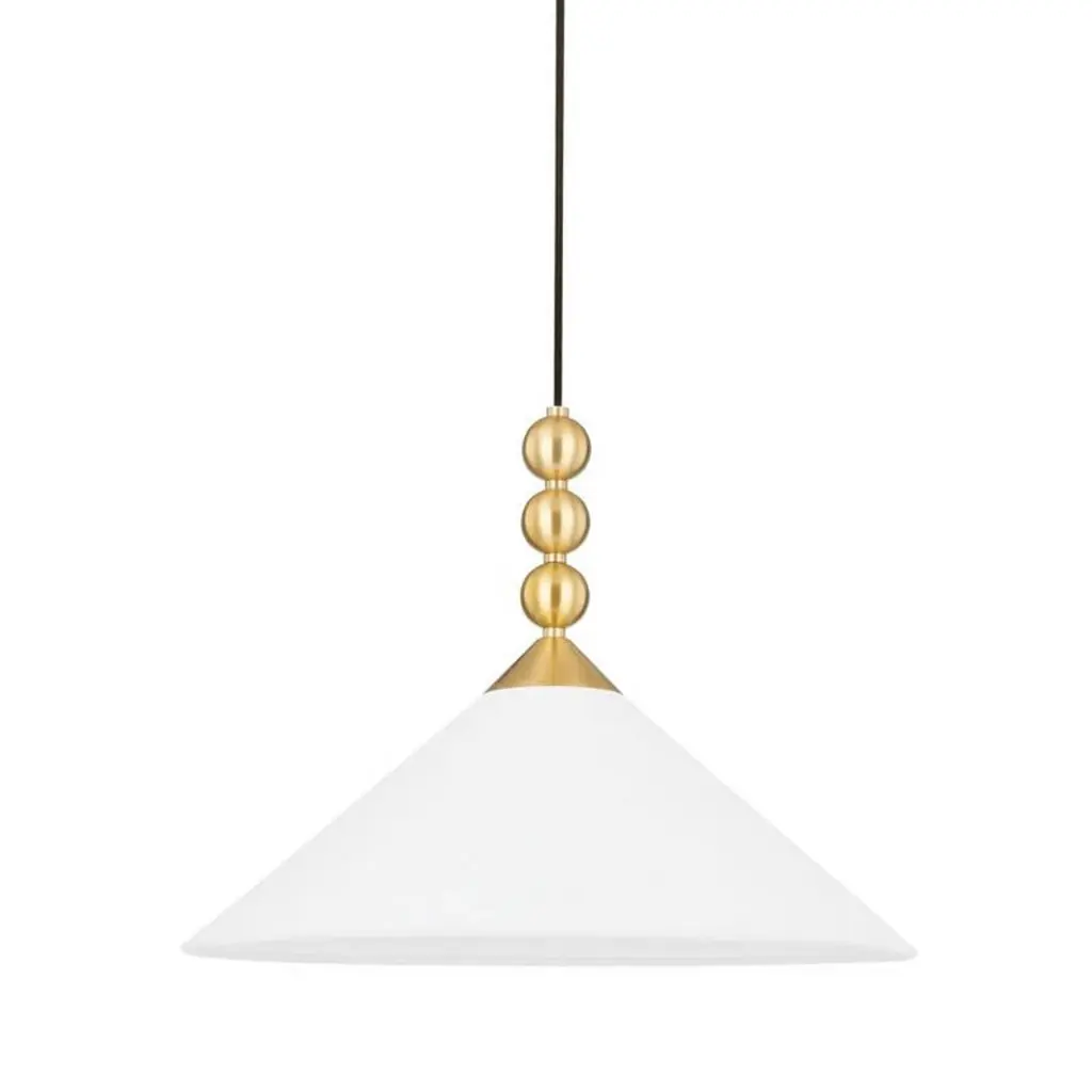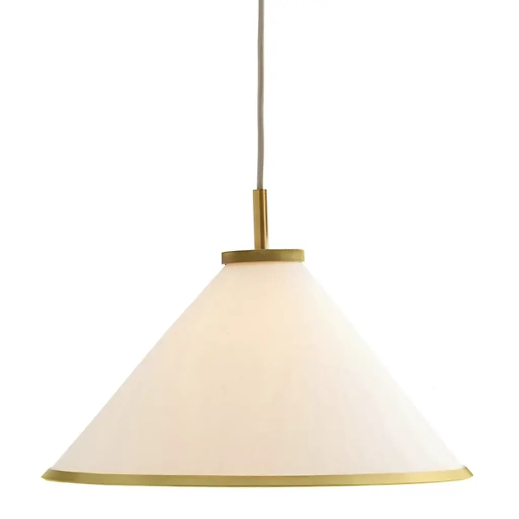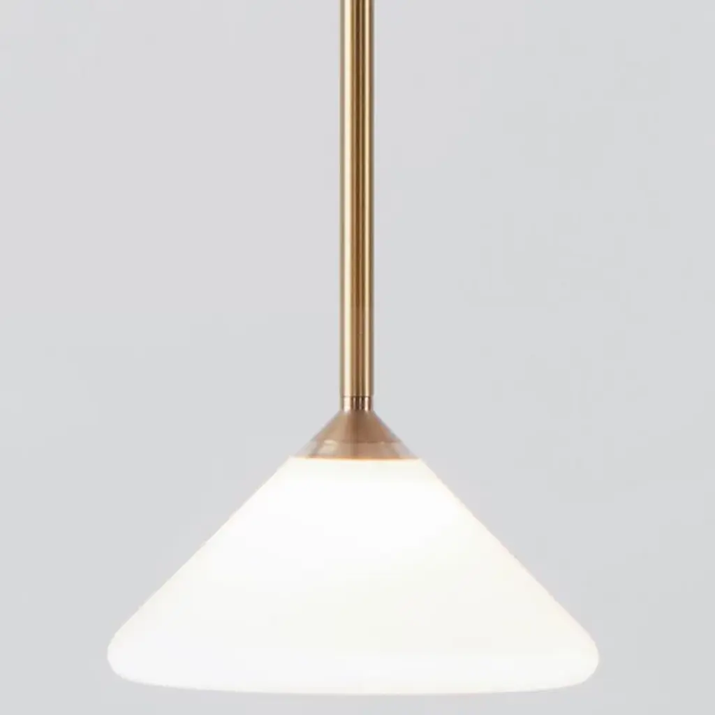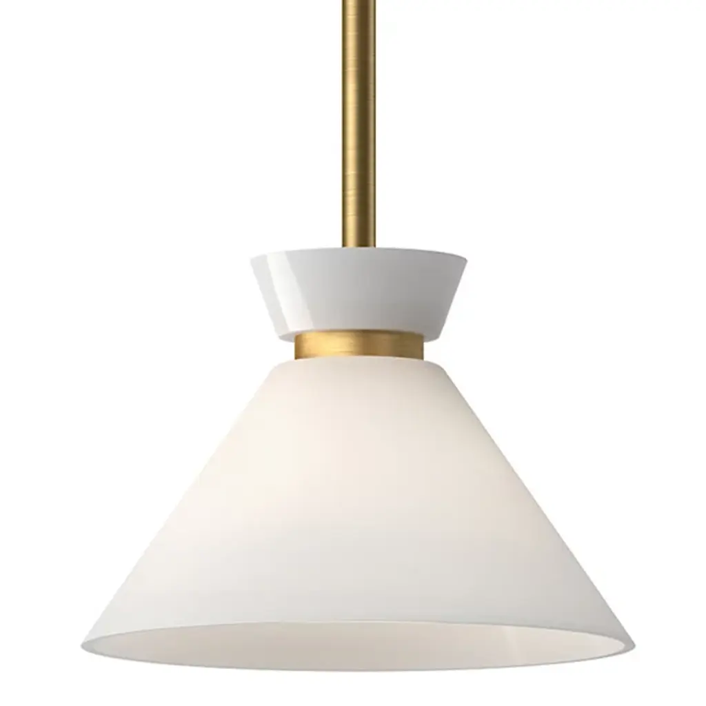 The Apollo LED Corded Mini Pendant from Roll & Hill puts a tidy twist on the cone silhouette with efficient lamping and time-tested materials. Each McKenzie & Keim-design piece features minimal lines and smooth transitions between components. Streaming from a rich wood canopy, the piece hangs freely using a slender, color-contrasting cord. A metal lamp holder draws one’s attention through its bold, precise angle changes. Hand-blown in white glass, the cone shade conceals LEDs to ease glare. This shade helps marry ambient light with a downcast glow.