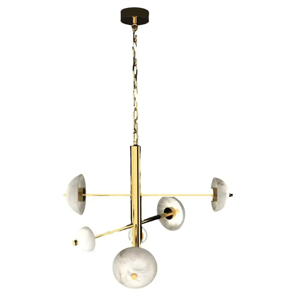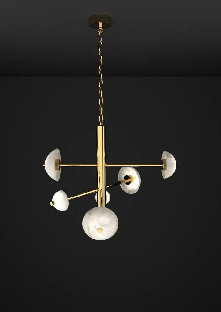 Apollo shiny gold metal pendant lamp by alabastro italiano dimensions: d 70,5 x w 54 x h 64 cm. Materials: white alabaster and metal. Available in different finishes: shiny silver, bronze, brushed brass, ruggine of florence, brushed burnished, shiny gold, brushed black, freedom green, shiny black and copper. Please contact us. All our lamps can be wired according to each country. If sold to the usa it will be wired for the usa for instance. Alabaster domes of various diameters and tubular elements of different widths give dynamism to this exclusive piece while maintaining a perfect balance of style. Named apollo in honour of the greek god who pulled the chariot of the sun, the serie is inspired by this peculiarity; a metal structure pulls a series of luminescent half spheres. After years of experience in the family business, which specializes in design and lighting, riccardo and alberto ongarato found the brand alabastro italiano. Each project is conceived and designed to give a strong sign of recognizability and uniqueness. The use of precious materials such as alabaster, brass, leather and blown glass, worked by the skilful hands of our craftsmen, are combined to create “timeless” objects. From the depths of the earth to the light of the sun. Alabastro italiano care about these extremes and transcends them in a creative dynamic that emphasizes simplicity and clean-cut lines. The company has created an entirely new project made in italy, revolutionizing the previously existing collections into eternal and evergreen lighting elements. By designing clean-cut and original lines, built-in with the latest technology and continuously innovating, alabastro italiano has never lost sight of its goal: perfection. The result of this work is an extraordinary collection of alabaster lightings. Alabaster needs human hands to come to life. The charm of these stone objects comes from their uniqueness, from the fact that they come from the hand of those who has left a mark and a memory with their work, each grain makes each piece unique. Alabaster needs human hands to come to life. The charm of these stone objects comes from their uniqueness, from the fact that they come from the hand of those who has left a mark and a memory with their work, each grain makes each piece unique. Alabaster is a material that leaves little traces of magic all around it. It is difficult to identify the exact point where the material ends and its reflection begins. It is impossible to understand how far the light sinks in its soft transparency. It changes according to the positions in which it is placed, depending on the point of view. Alabaster is a compact and rare stone that lays down very precise laws requires a familiarity that only italian craftsmen possess. Alabastro italiano collaborates with each client to create a unique project. Starting from the advice for better architectural lighting, it brings its know-how, materials, design and creative inspiration to interior architects and interior designers. up to 250v (europe/uk standard).