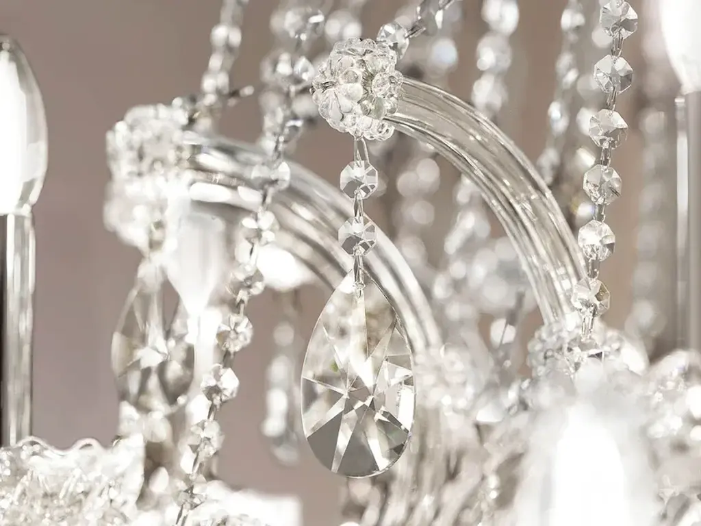 Aqaba is a pendant lamp with glass or crystal pendants.Standard lighting: 56×E14×10 W MAX (NOT INCL.)Integrated LED lighting: RGB-W 56×LED SOURCE - 476 W TOTIntegrated LED lighting: DW 56×LED SOURCE - 453,6 W TOTAncient Regime is the trend chosen for Aqaba, which with its crystal garlands evokes the Venetian splendour of an era admired the world over.Galvanised metal frame with arms covered in clear glass.Clear glass or clear crystal pendants.Traditional or integrated LED lighting.Standard Lighting: Aqaba illuminazione tradizionale. Lampadine E14.Dynamic white (DC) - Integrated LED lighting: The Dynamic White LED lighting system adjusts the temperature of the light by recreating the natural cycle of the sun, following the rhythm of the circadian cycle.White light can be adjusted to a temperature ranging from 2700°K to 6500°K thanks to the various dimming control systems provided.Each Aqaba device can be alternatively managed in the following ways: DMX protocol, remote control, control panel, Tuya, Alexa, Google Home.RGB-W - Integrated LED lighting: Through the RGB-W LED lighting system, the Aqaba chandelier transforms light into pure colour, filling the space with infinite nuances.Surfaces alter their appearance and the whole ambience changes according to your mood. White light at 3000°K can also be obtained.Each Aqaba device can be alternatively managed in the following ways: DMX protocol, remote control, control panel, Tuya, Alexa, Google Home.