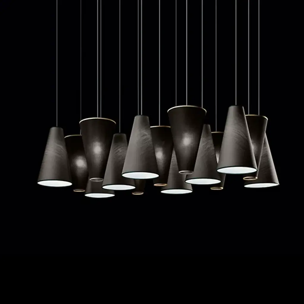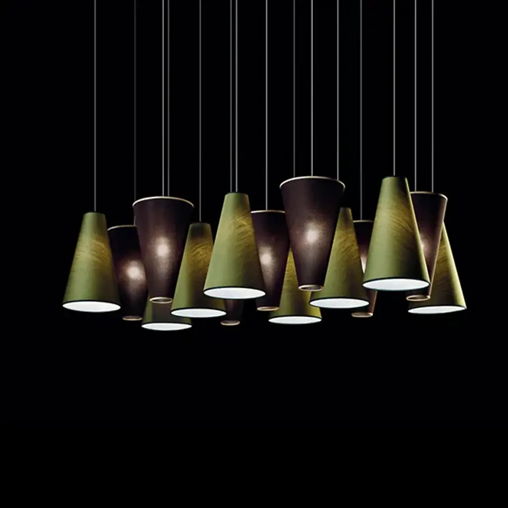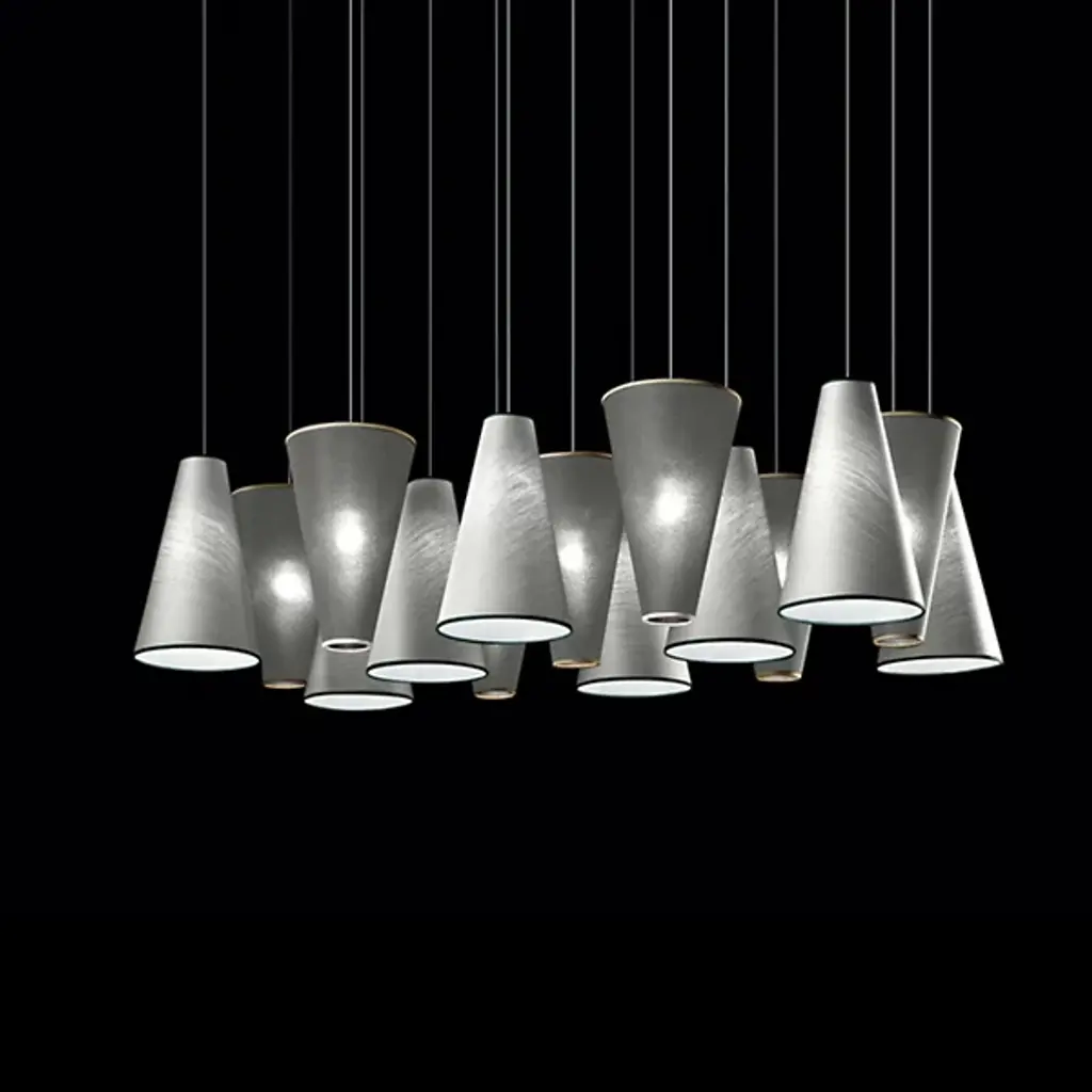 Aqua SO 15 Light Up/Down Pendant Light showcases a minimalistic design that is sure to shine bright in any modern setting. This versatile pendant light features 15 cone shaped pendants that can be configured upside or downside. Available in your choice of blue, green, ivory, light blue, brown, white, red, chrome and gold exterior finishes. Suitable for both residential and commercial applications, the Aqua SO 15 Light Up/Down Pendant Light looks best in modern living rooms, kitchen and dining areas.
