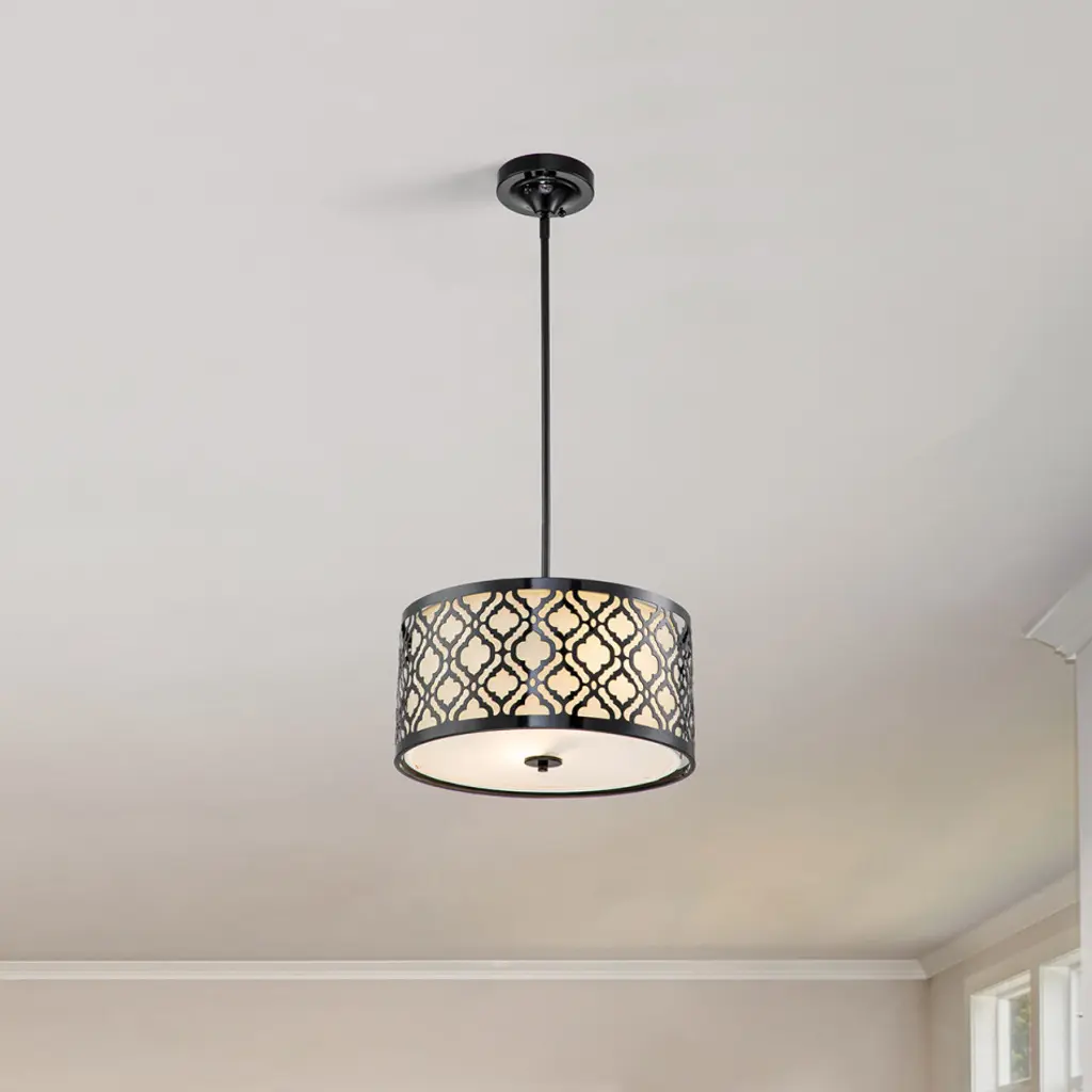 This collection is a charming, vintage inspired design that features unique metal work. The beautifully designed Arabella series has a black outer shade with a cream linen inner shade and glass diffuser to soften the light. This medium pendant can easily be converted into a semi-flush mount and has an adjustable height of up to 52" to allow for many table and ceiling heights. Our black finish allows this retro inspired pendant to move easily from traditional to modern decor, elevating your space to reflect your on-trend style.