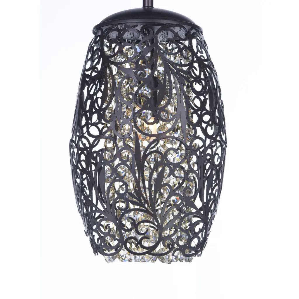 The Arabesque collection's intricate patterns are formed in metal and finished in Golden Silver. Strands of crystal beads add sparkle as they shimmer through the Xenon lamps. Unique oval-shaped pendants add a touch of class to any room.