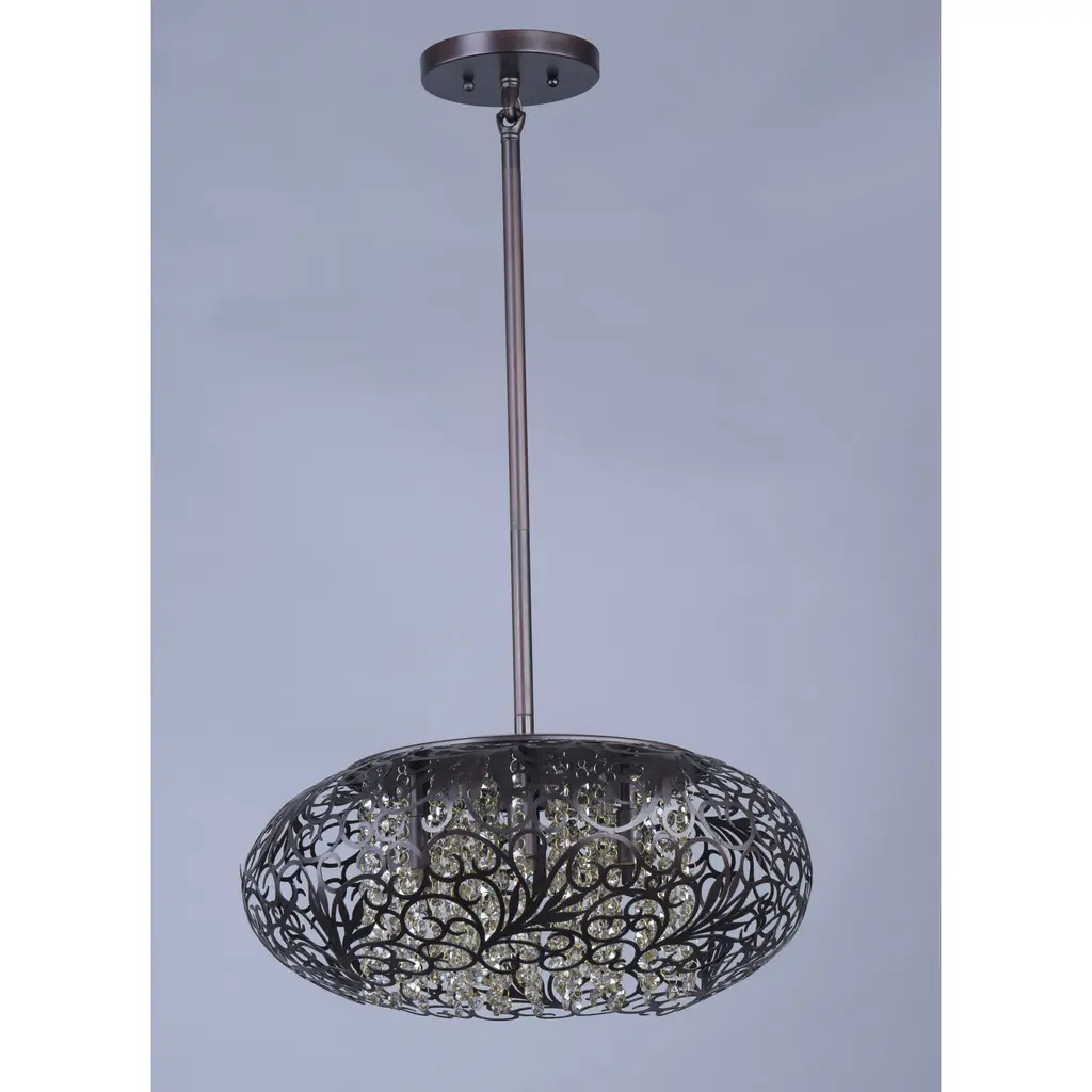 The Arabesque collection's intricate patterns are formed in metal and finished in Golden Silver. Strands of crystal beads add sparkle as they shimmer through the Xenon lamps. Unique oval-shaped pendants add a touch of class to any room.