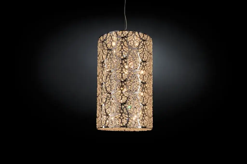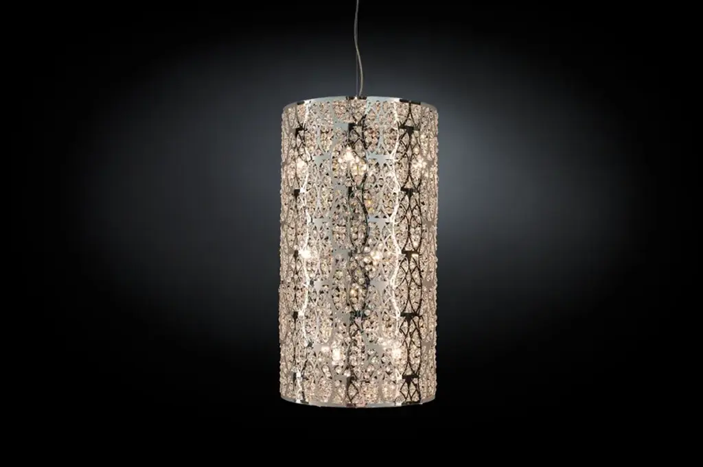 Pendant lamp cilindro, stainless steel/asfour crystals.