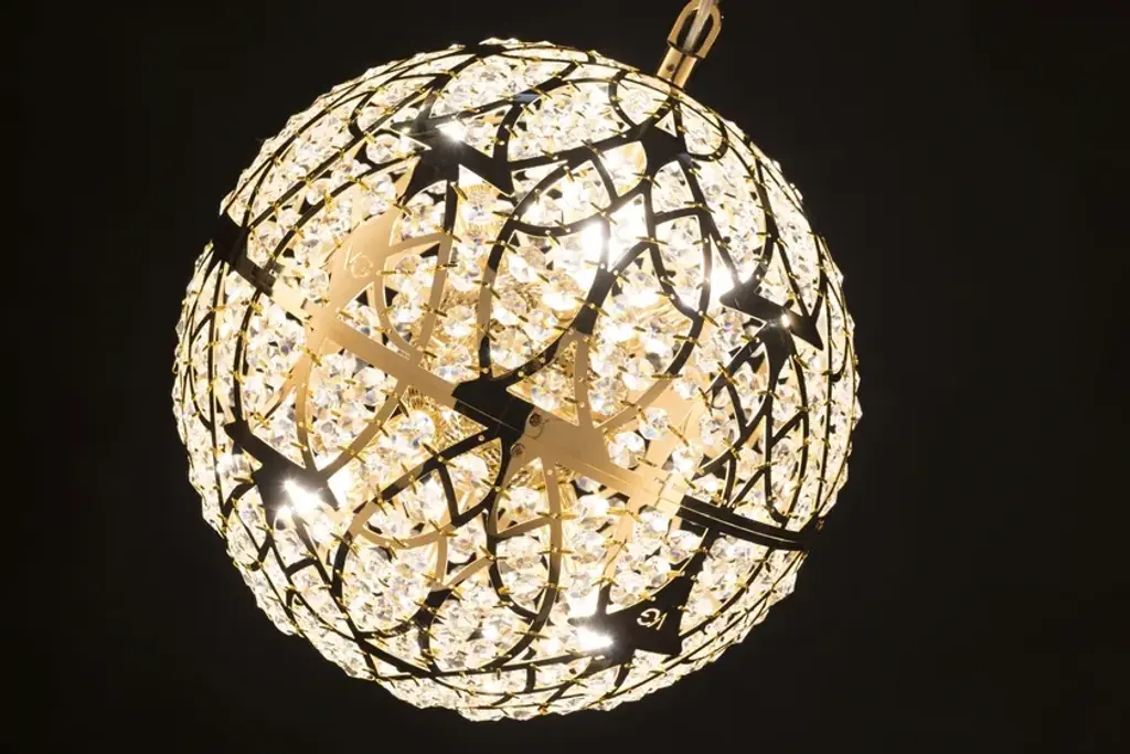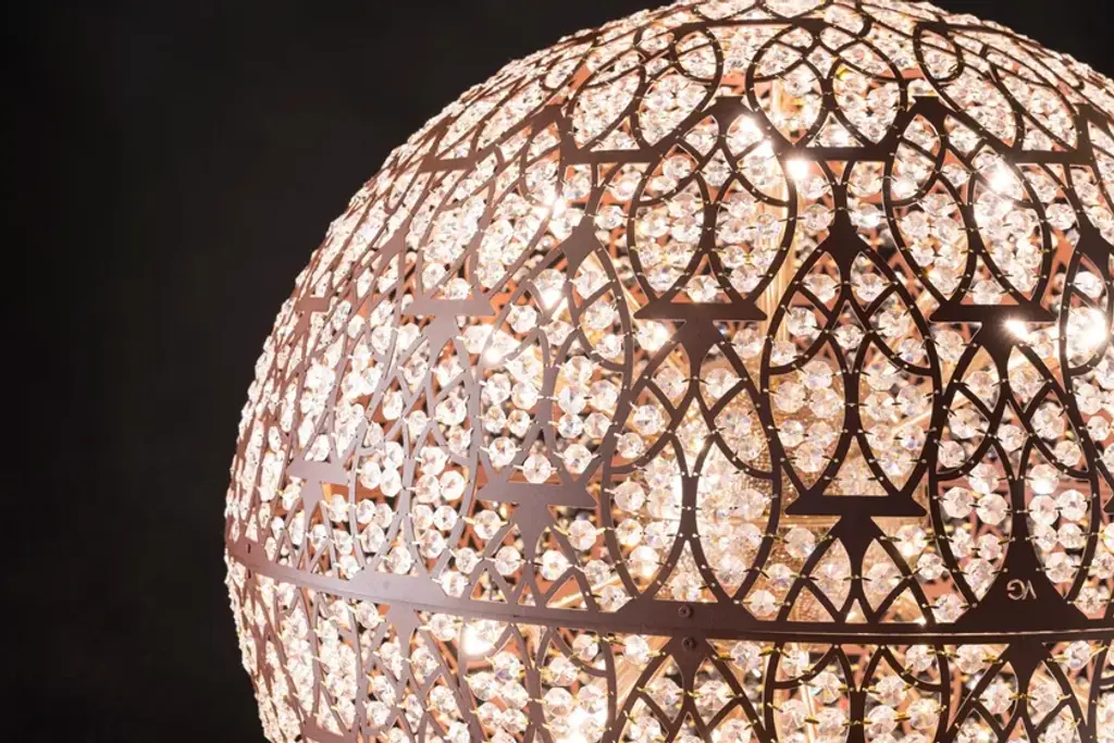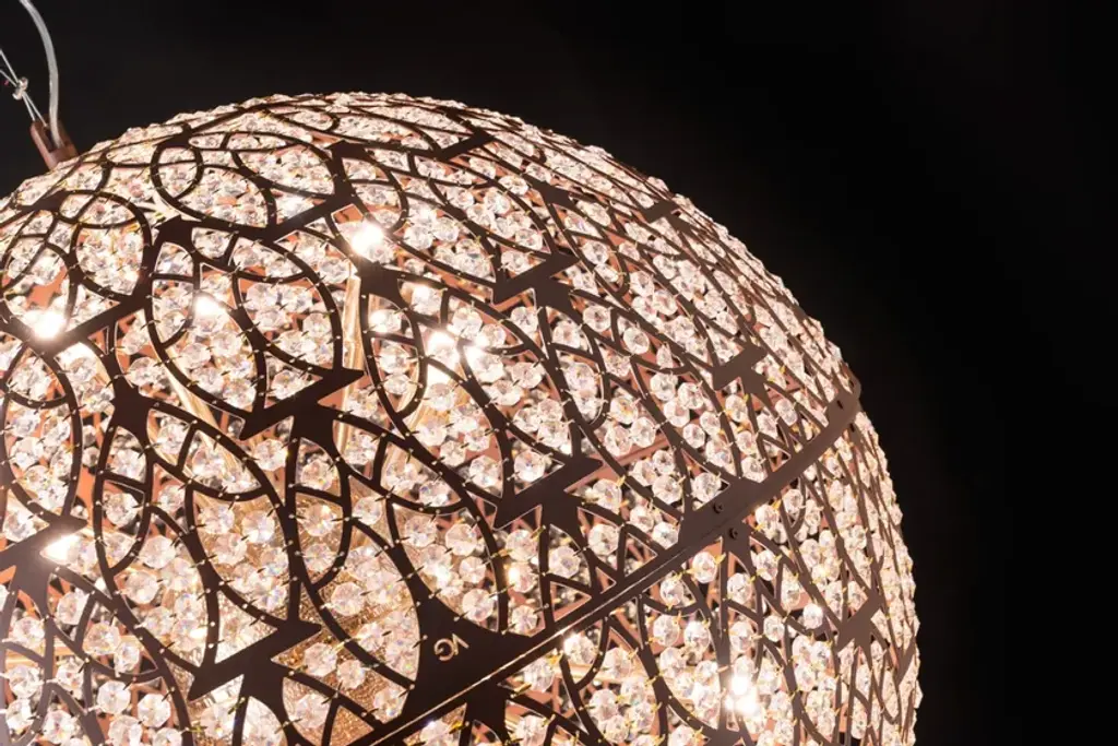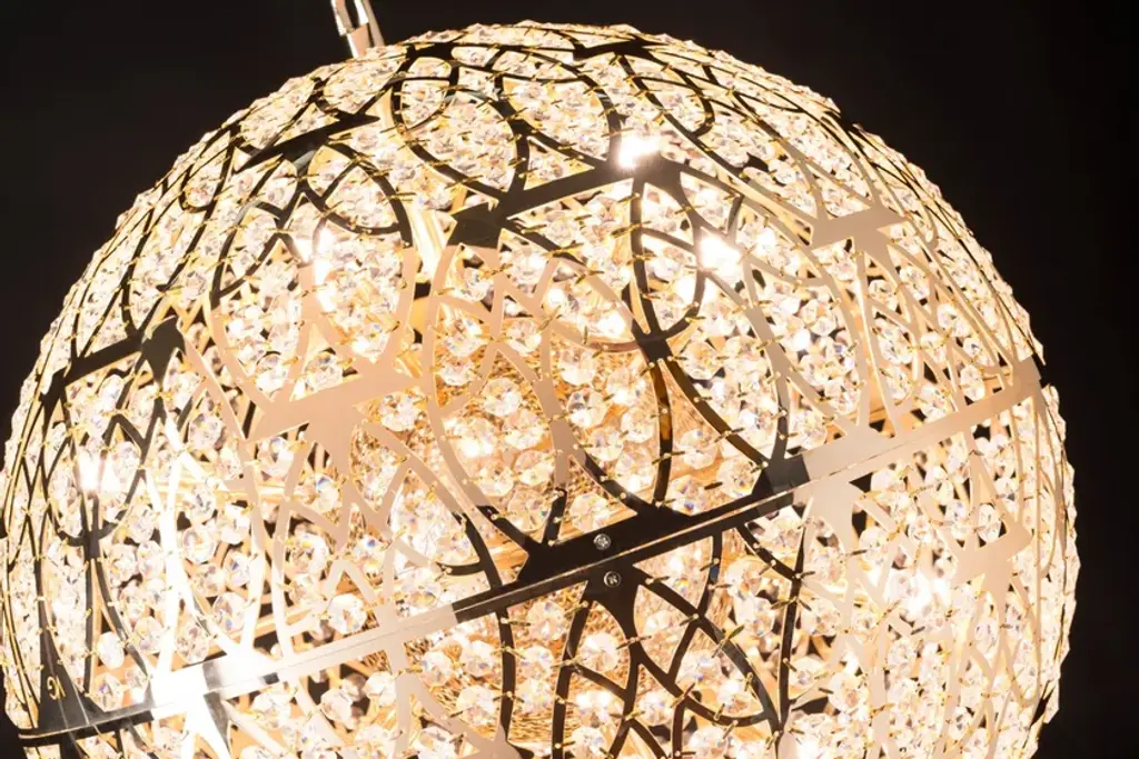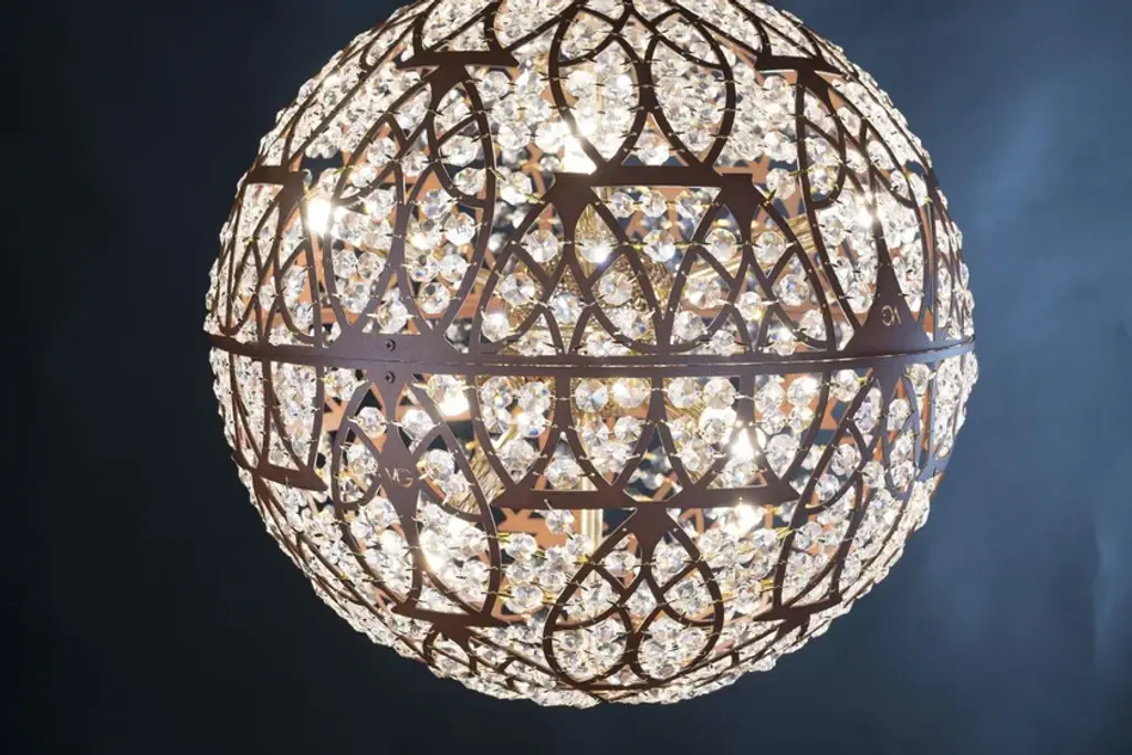 Suspension lamp arabesque earth g9 connection.Stainless steel/asfour crystals.