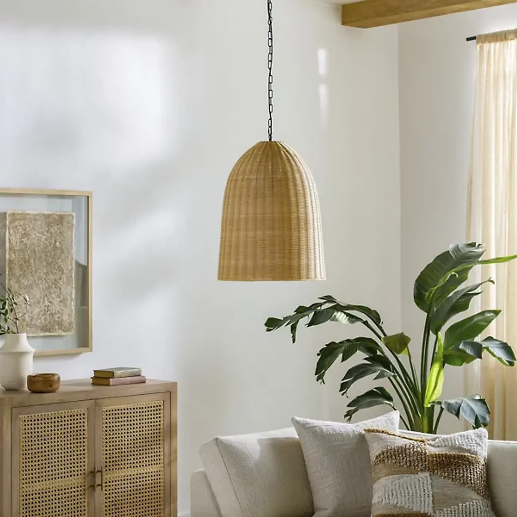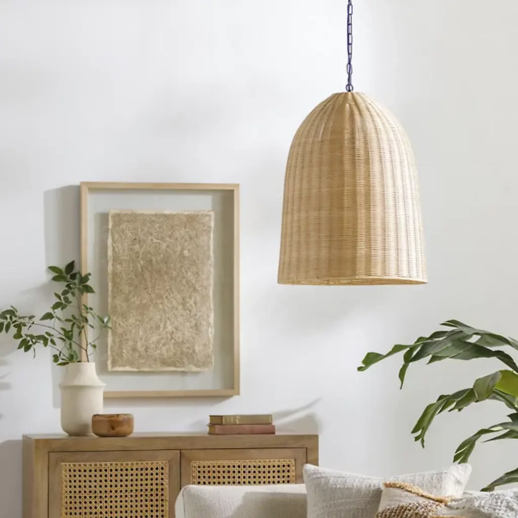 The Arboria Pendant from Surya showcases handwoven rattan craftsmanship that turns ordinary ceiling lighting into a warm, textural statement. Unlike conventional glass or metal fixtures, this pendant employs natural materials to create a softer lighting experience that works well above dining areas, kitchen islands, or entryway spaces where mood and ambiance take precedence over intense task lighting. The rustic-industrial fusion gives this suspension a versatile character that complements both casual and composed interiors. Its easy-to-operate on/off socket makes this lighting solution as practical as it is beautiful.