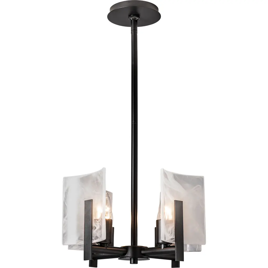 Versatility. This Arc fixture is so adaptable that it can be used as easily as a semi-flush or a pendant, depending upon the setting. Features an adjustable-height Multi-Stem making it adaptable to a variety of settings. The Arc's trademark convex glass panels feature abstract white "swirls" for a unique look. Available in all standard finishes.