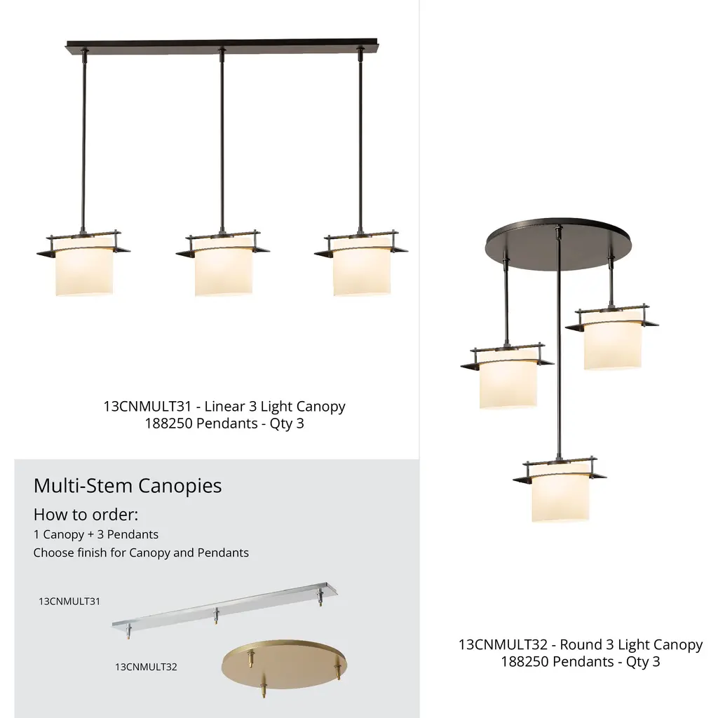 A horizontal steel bar connects tube to glass. The line of the steel plate racing across the glass makes it look as though metal has passed through glass of the pendant rather than the other way around. Crafted by our artisans here in Vermont.