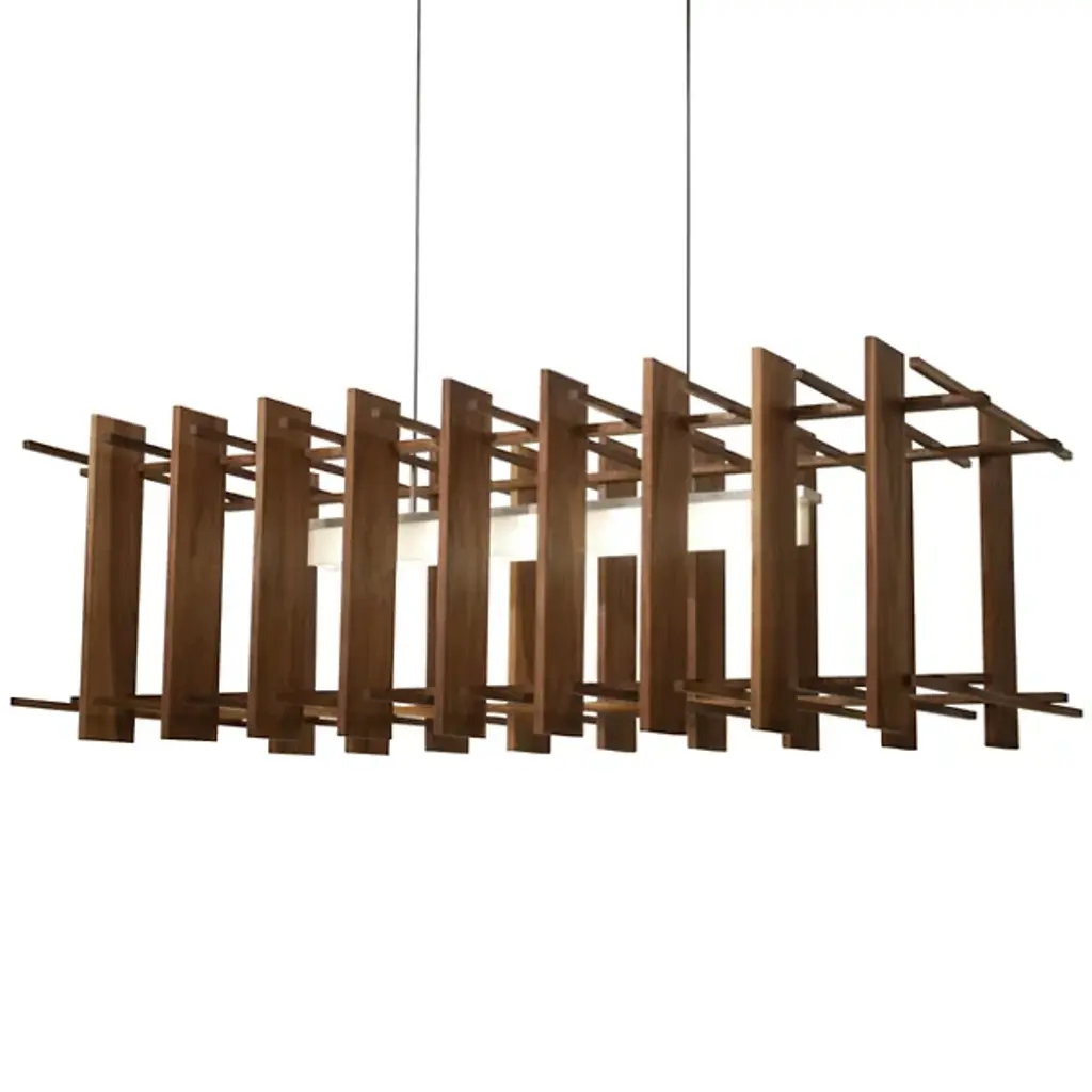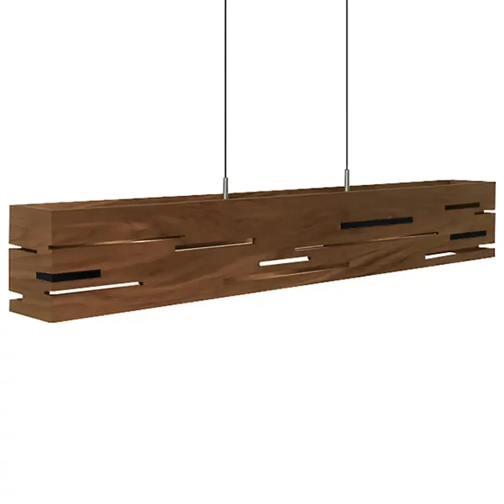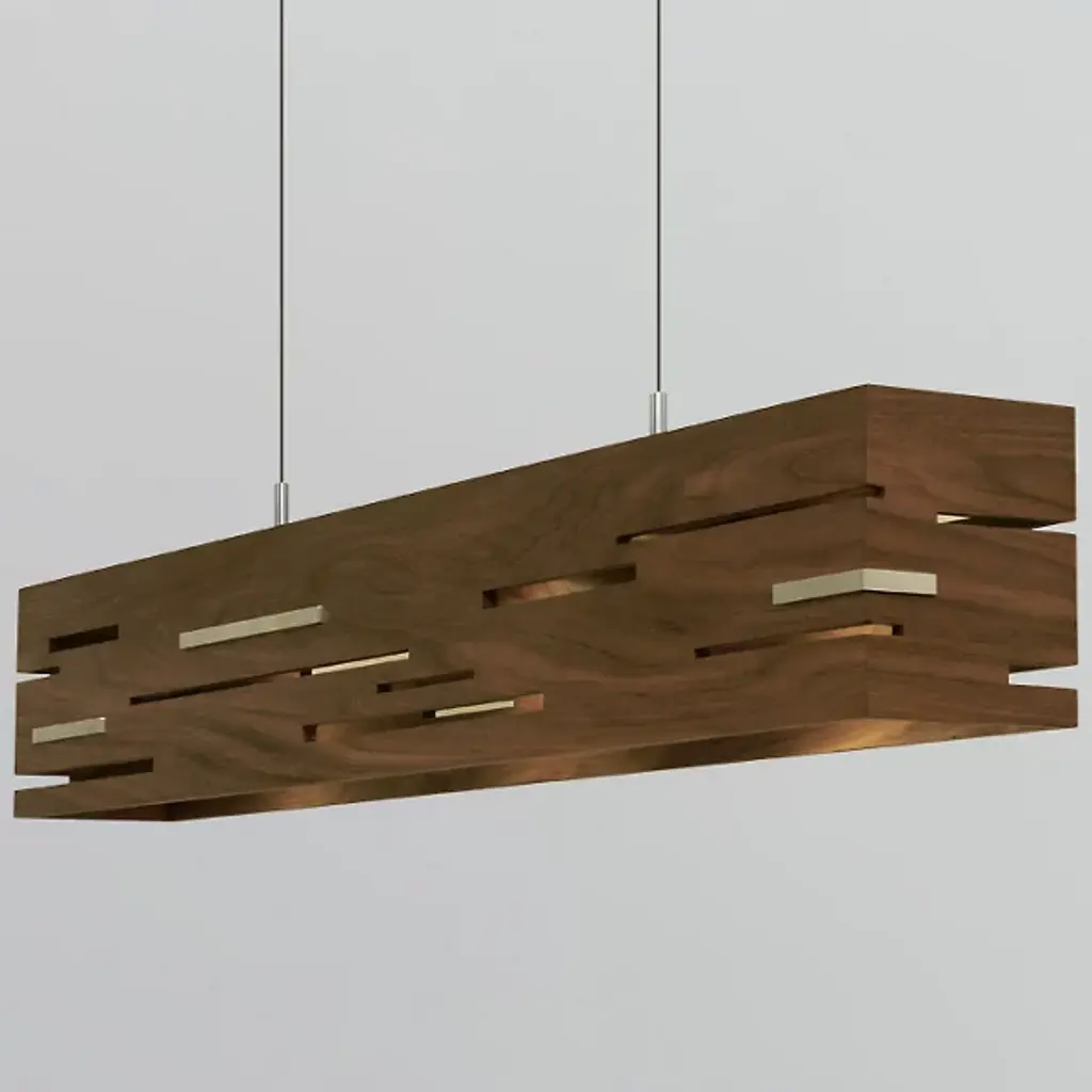 An experiment in density and mass, the Cerno Arca LED Linear Pendant takes on different personalities depending on the viewpoint. From one angle, it's a masculine monolith of Walnut. From another, it's an elegant open-aired wood atrium. A dimmable LED light bar is finished in Black Anodized or Brushed Aluminum while the pendant is available in Oiled or Dark Walnut.