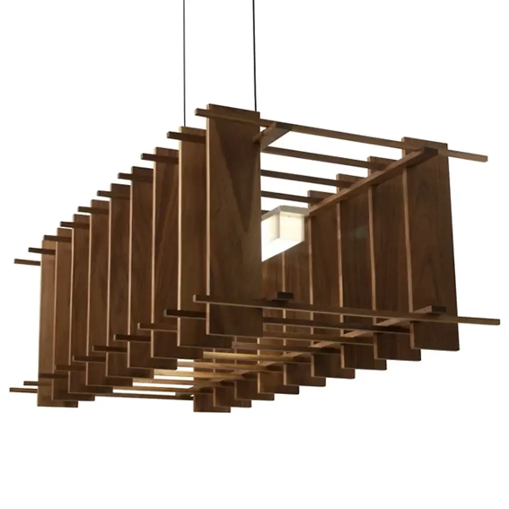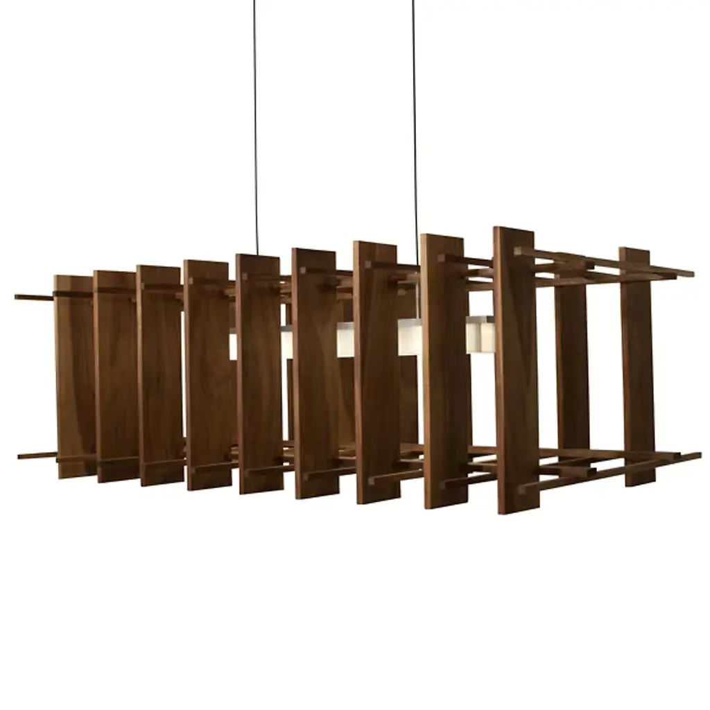 An experiment in density and mass, the Cerno Arca LED Linear Pendant takes on different personalities depending on the viewpoint. From one angle, it's a masculine monolith of Walnut. From another, it's an elegant open-aired wood atrium. A dimmable LED light bar is finished in Black Anodized or Brushed Aluminum while the pendant is available in Oiled or Dark Walnut.