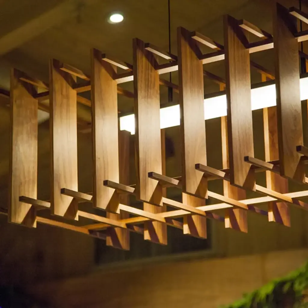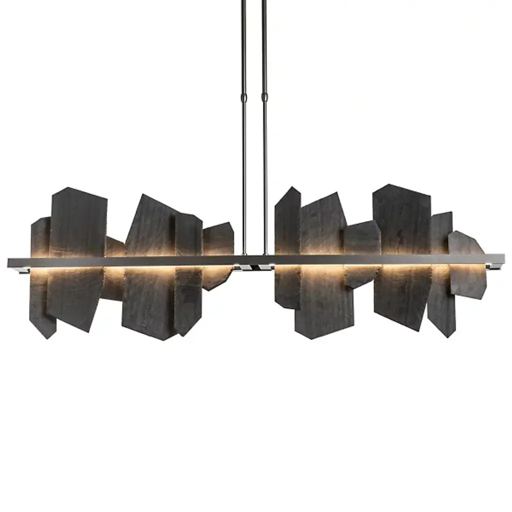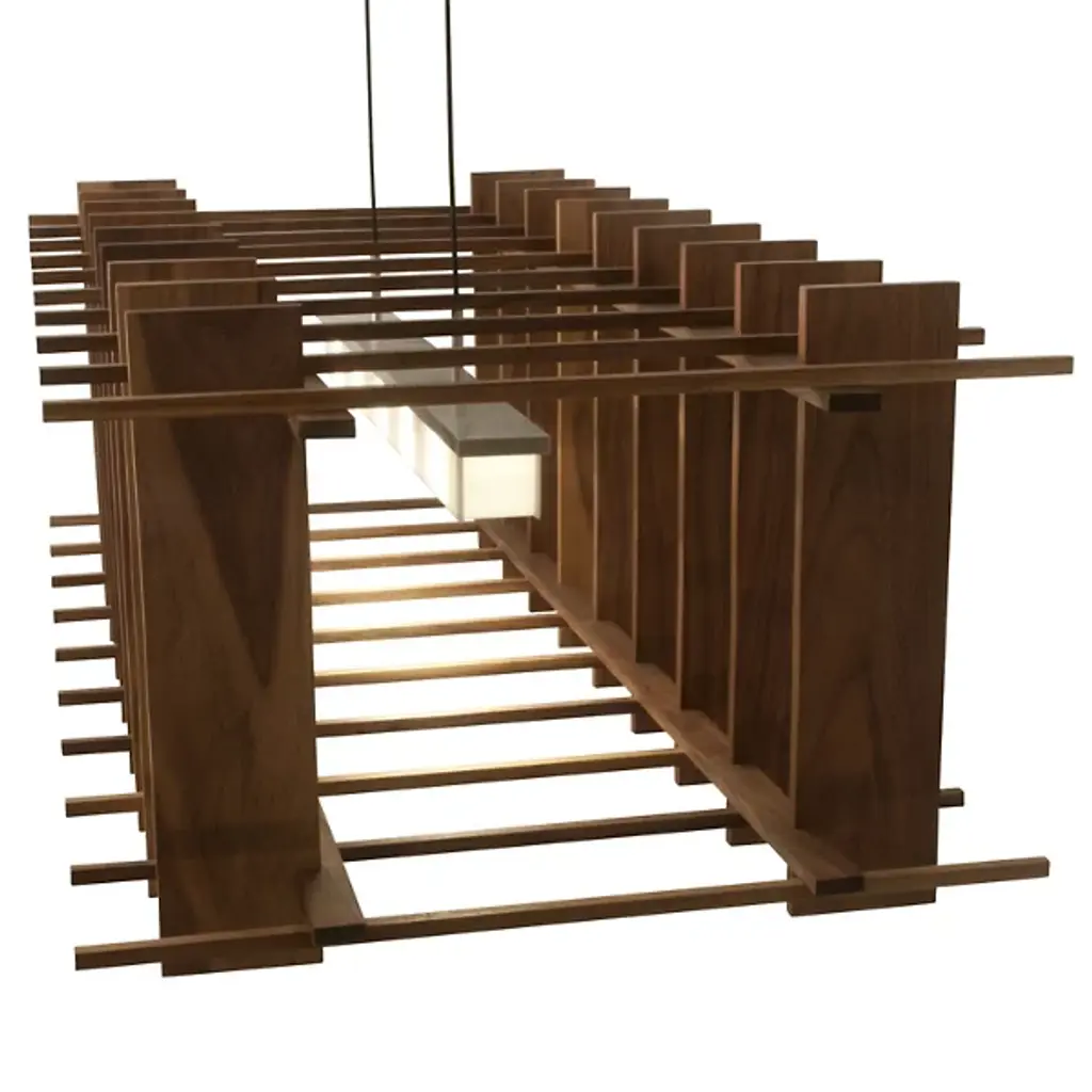 An experiment in density and mass, the Cerno Arca LED Linear Pendant takes on different personalities depending on the viewpoint. From one angle, it's a masculine monolith of Walnut. From another, it's an elegant open-aired wood atrium. A dimmable LED light bar is finished in Black Anodized or Brushed Aluminum while the pendant is available in Oiled or Dark Walnut.