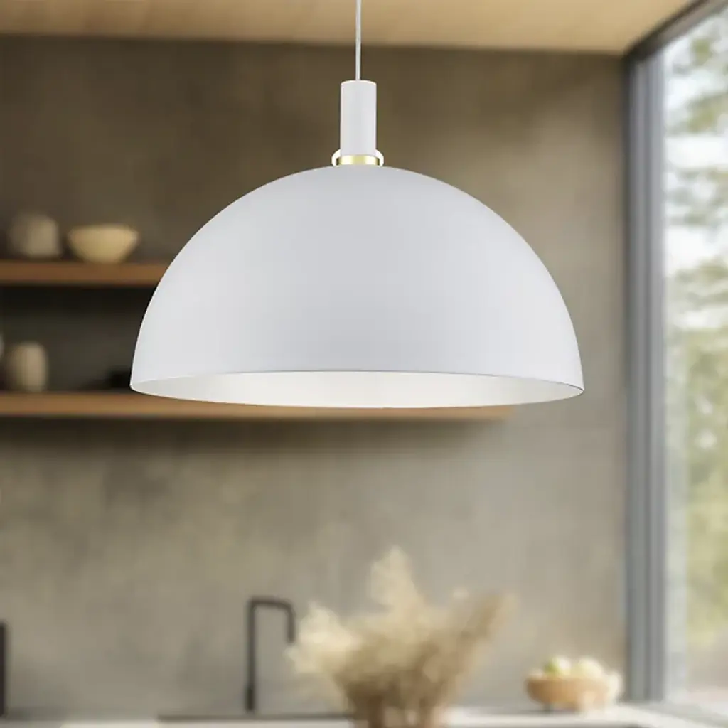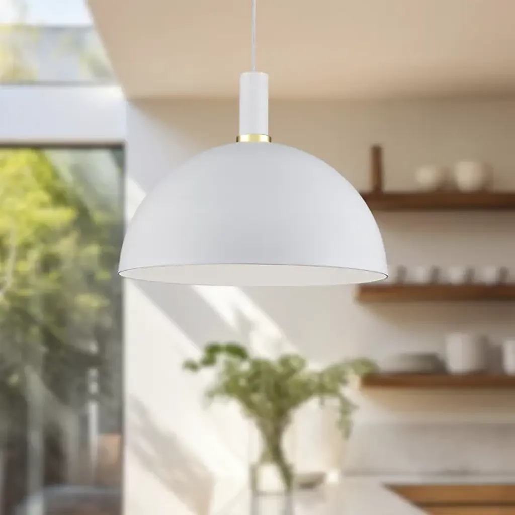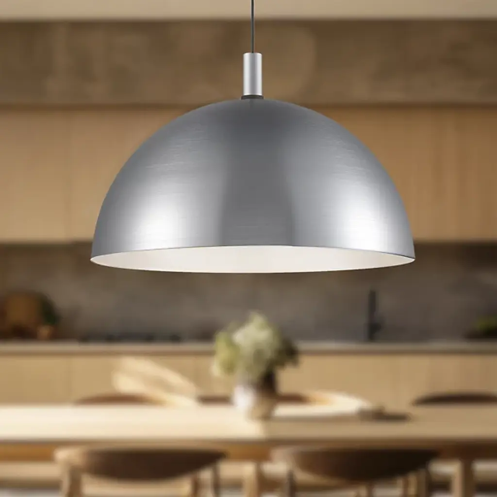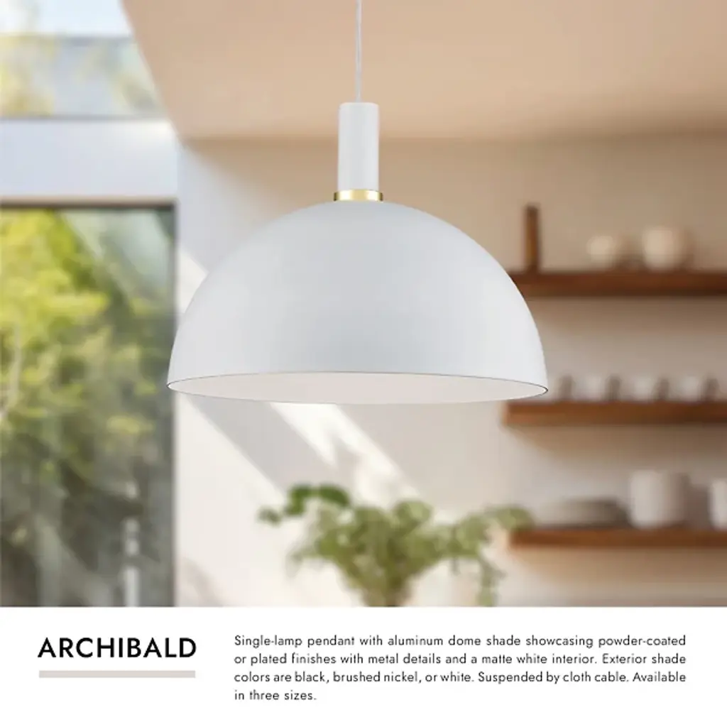 The Archibald Pendant from Kuzco Lighting strips down the classic pendant into a simple, elementary piece that never lacks in sophistication. There is a clear distinction between its lamp shade and its base. The distinction comes from its faint yet poignant ringed metal accent that separates the 2 segments. Its aluminum lamp shade is a wide domed construction with an elegant modern pop. Its shade’s walls capture warm light from its incandescent bulbs and focus it into a downlight. It is an essential modern piece over dining room tables and kitchen counters.