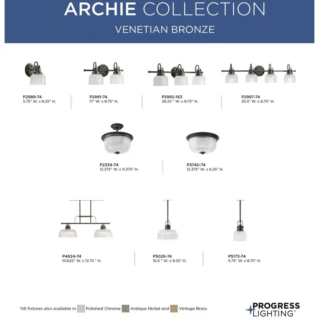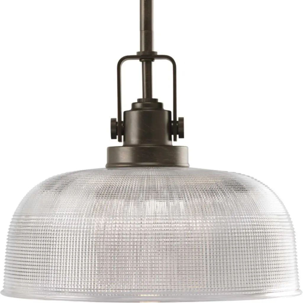 The Archie Collection brings a vintage, industrial flair to interior settings. The collection’s distinctive double prismatic glass adds visual interest as its crisscross pattern comes to life when illuminated. The distinctive finely crafted strap and knob detail adds authentic industrial flair. This one-light pendant is perfect for kitchens, dining rooms, rec room and anywhere pendants could be used. Venetian Bronze finish.