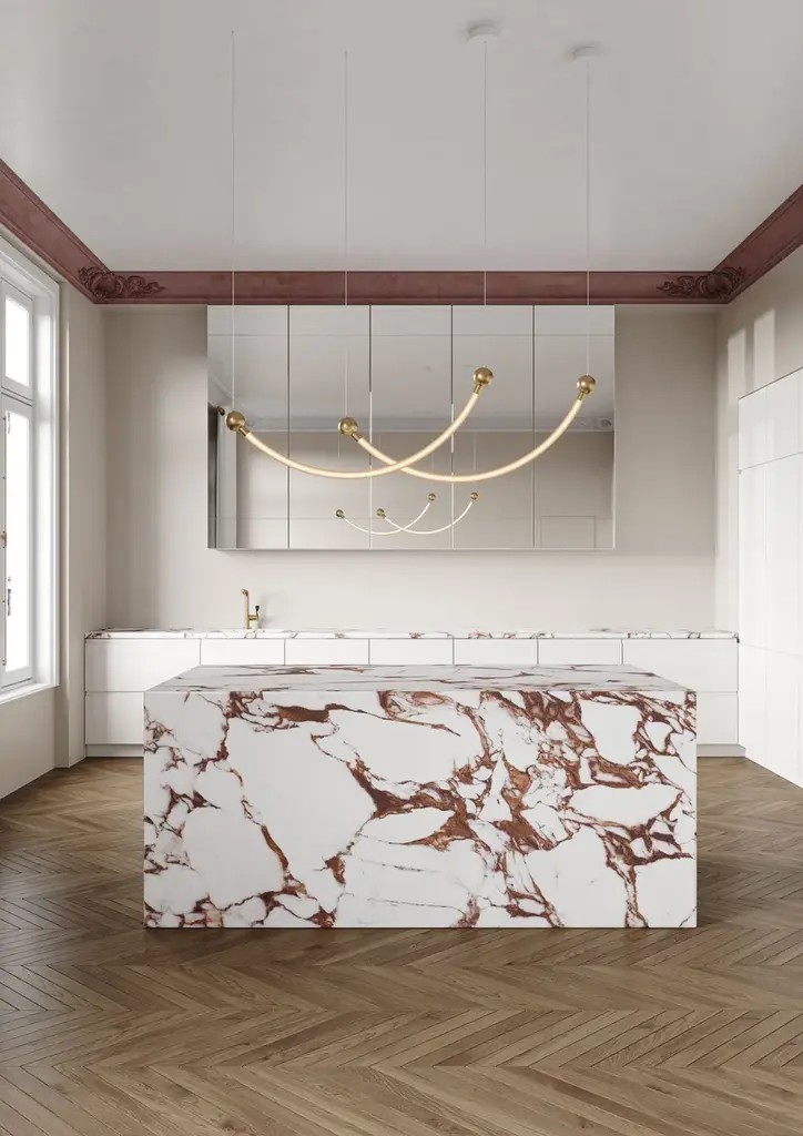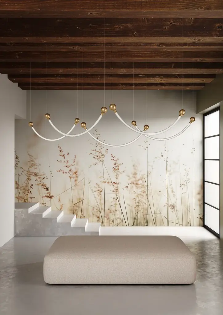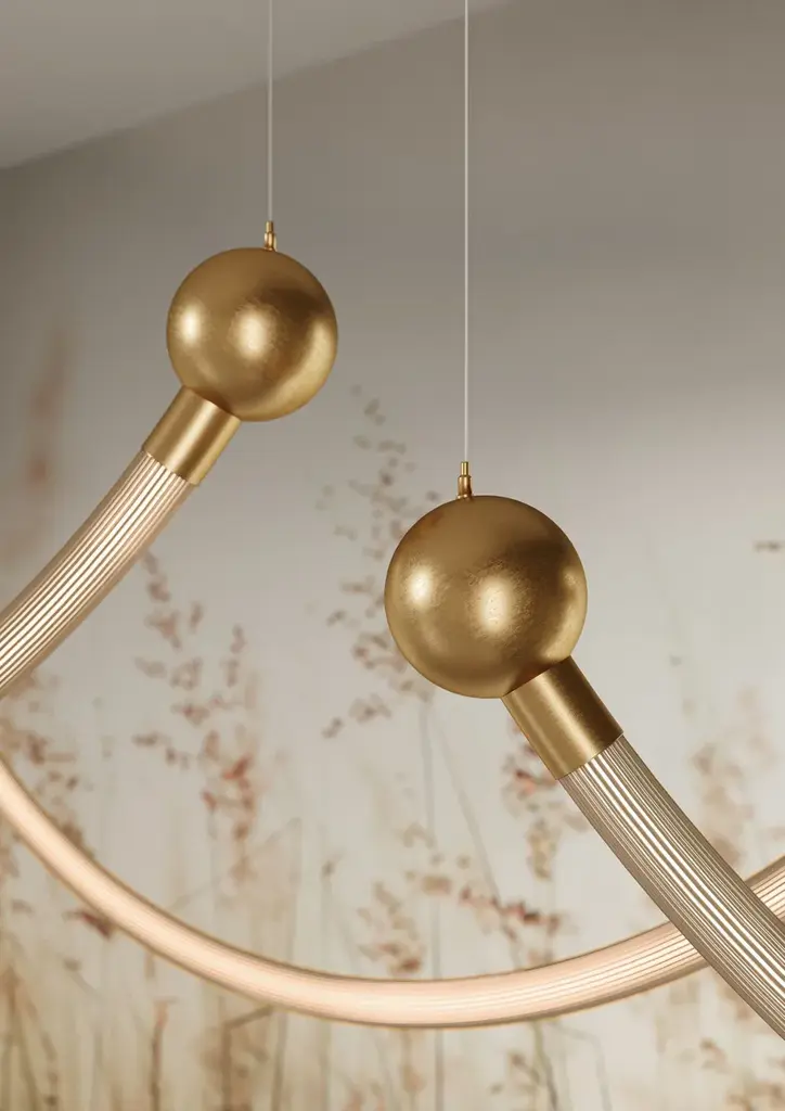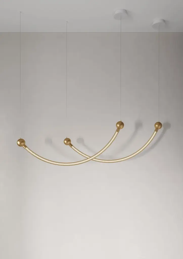 Arco is a suspension lamp with a transparent striped Murano glass tube. The blown and hand-pulled glass tube is illuminated internally at 360 degrees.- SS.1019/OS/T: Transparent glass tube, brushed gold mounting, and white painted ceiling rose;- SS.1019/OS/F: Smoke-colored glass tube, brushed gold mounting, and white painted ceiling rose;A perfect fusion of tradition and innovation, combining the craftsmanship of Murano glass with new lighting technologies. The hand-blown and hand-pulled glass tube is illuminated internally at 360 degrees. The collection is a tribute to elegance and creativity, offering unique pieces that allow architects and designers to create lighting installations that enhance any space.